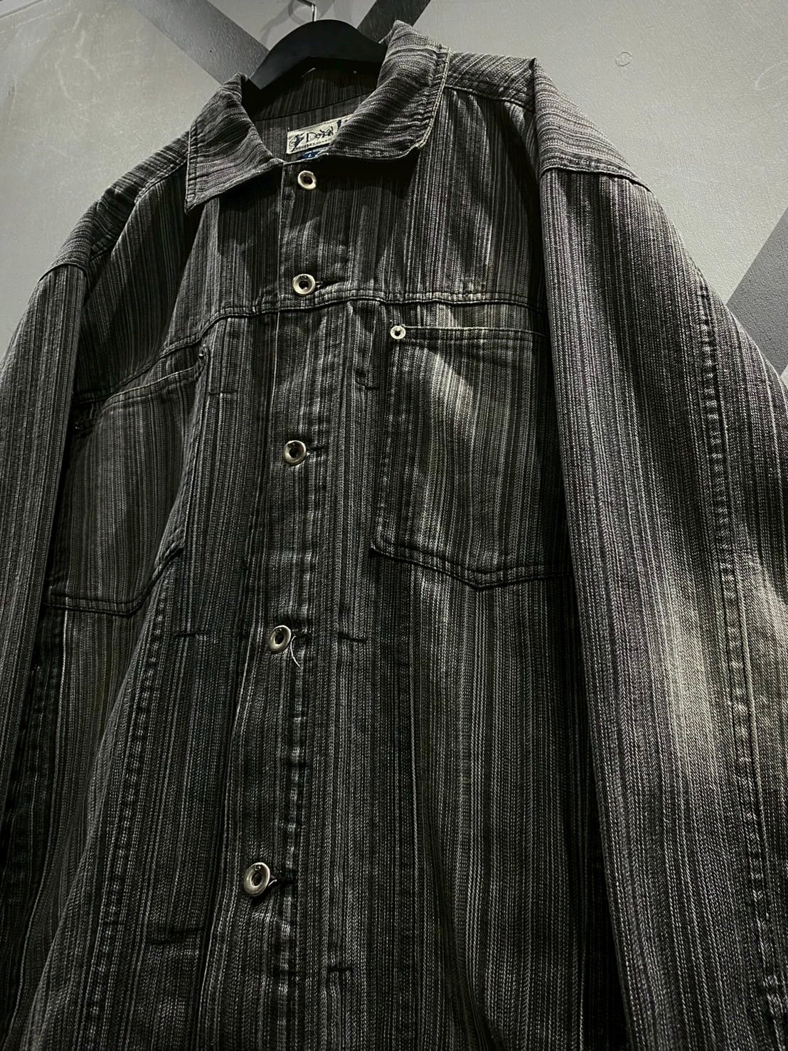 白、グレー、黒のモノトーンのカラーリングの糸を用いて、絶妙なフェード感を表現したデニムジャケット。