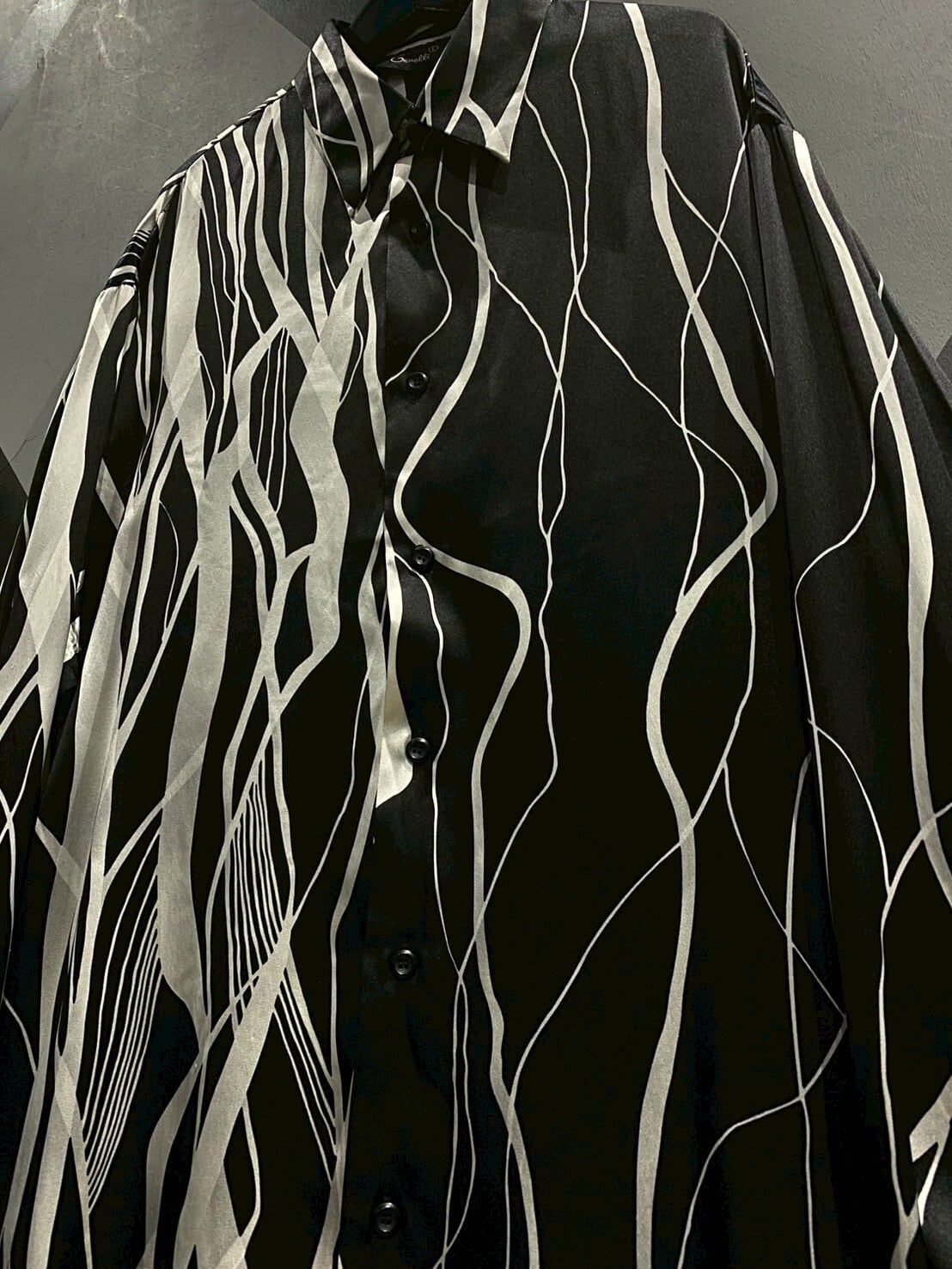 店頭、オンライン共にガッツリと展開中、大変ご好評頂いておりますシャツアイテムより、モノトーンでアーティスティックな柄を載せた1着をご紹介致します。