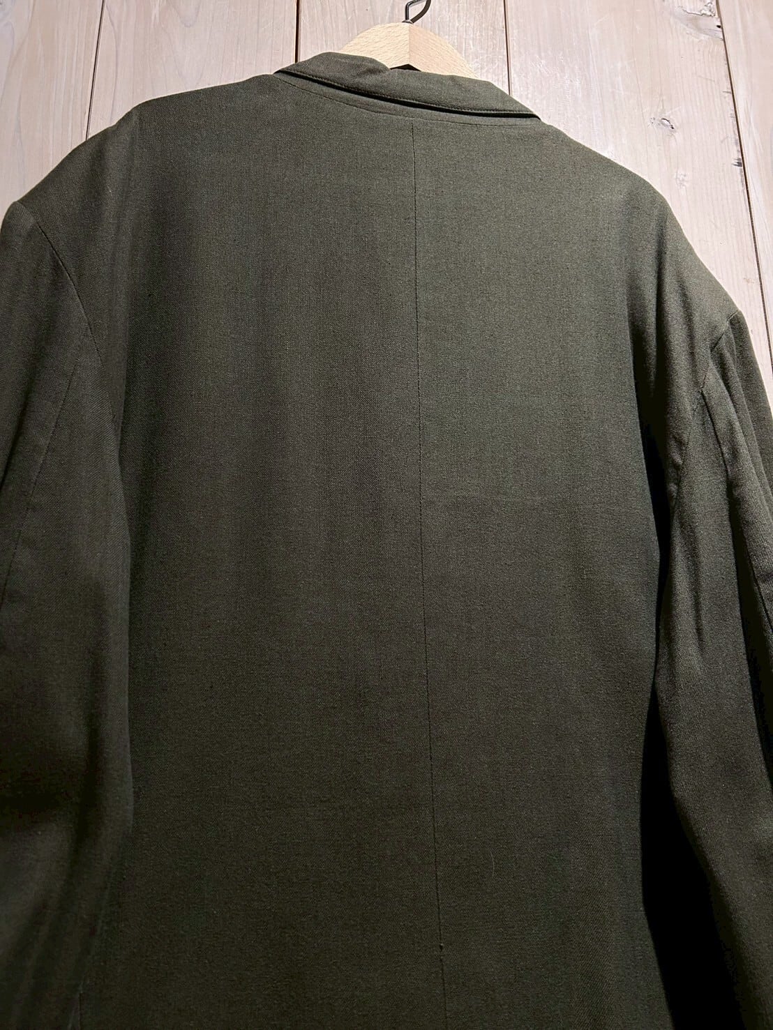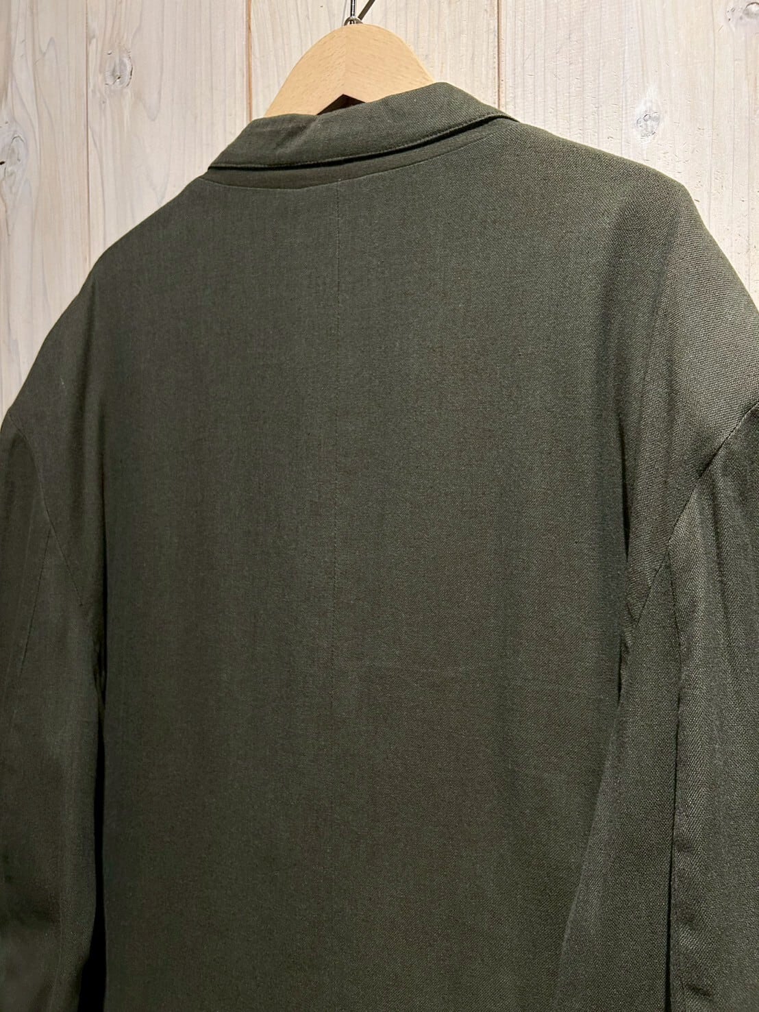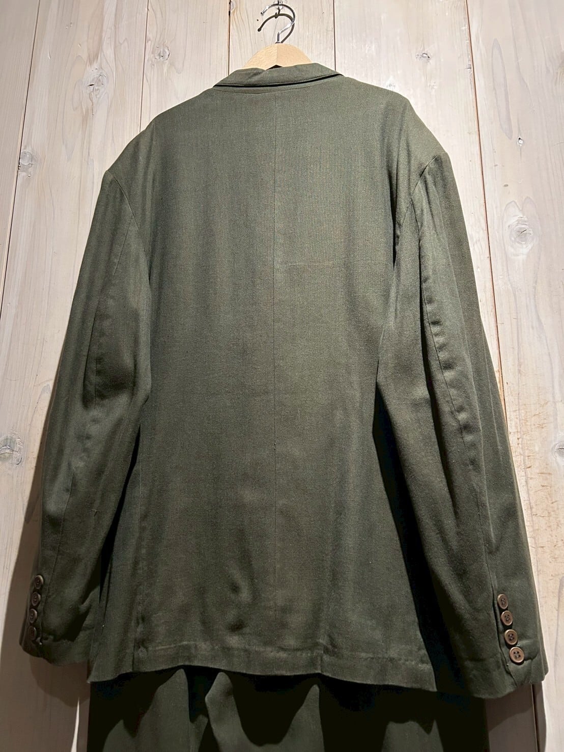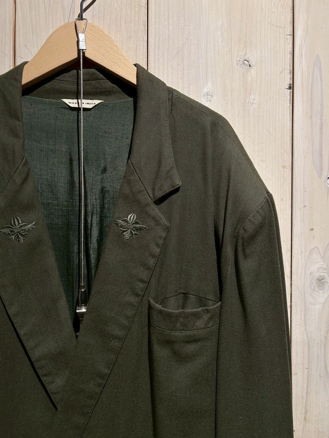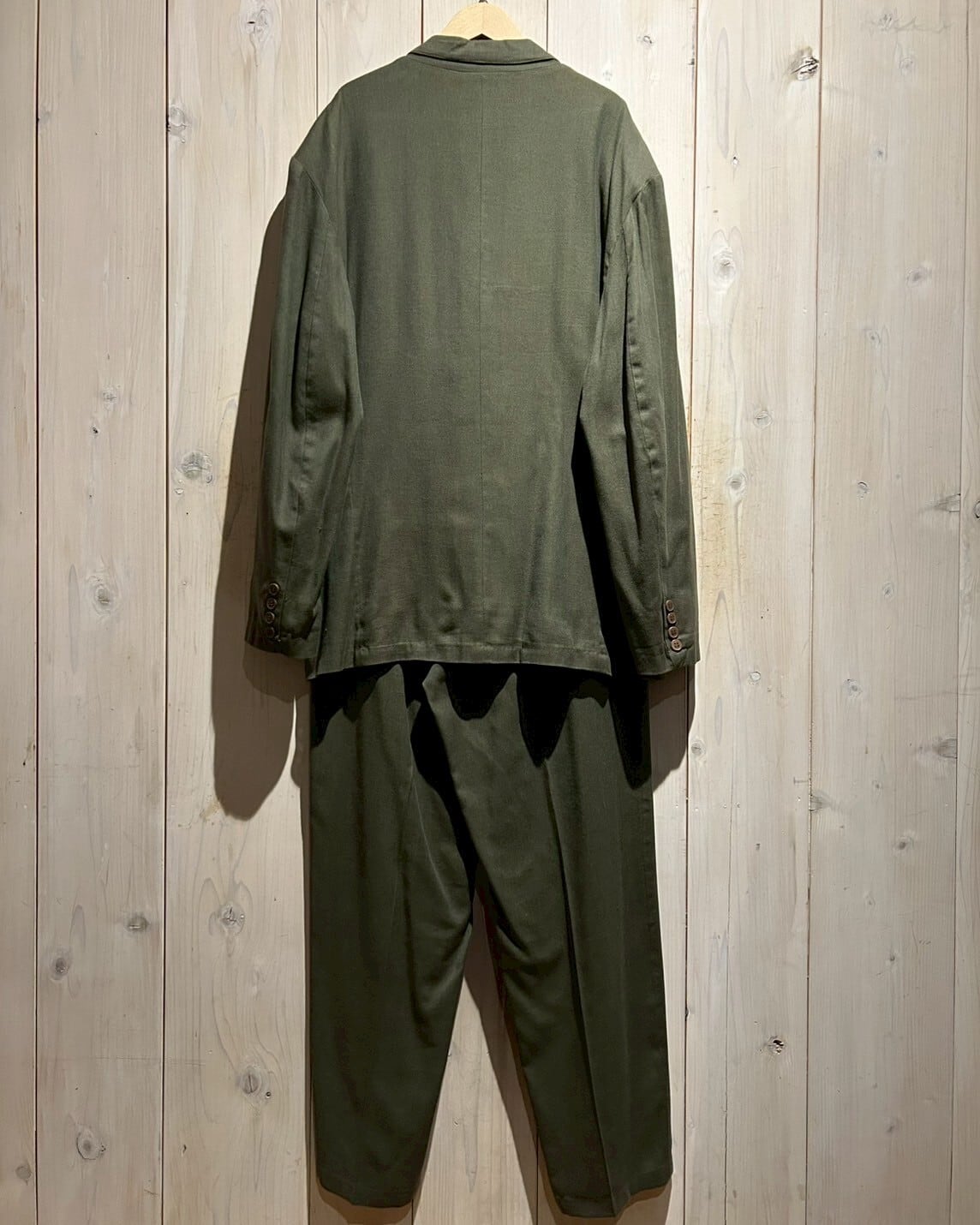柔らかく肌触りの良いインド綿を用いた、ダブルブレストのセットアップ。カーキかつダブル、お探しの方も多い1着かと。