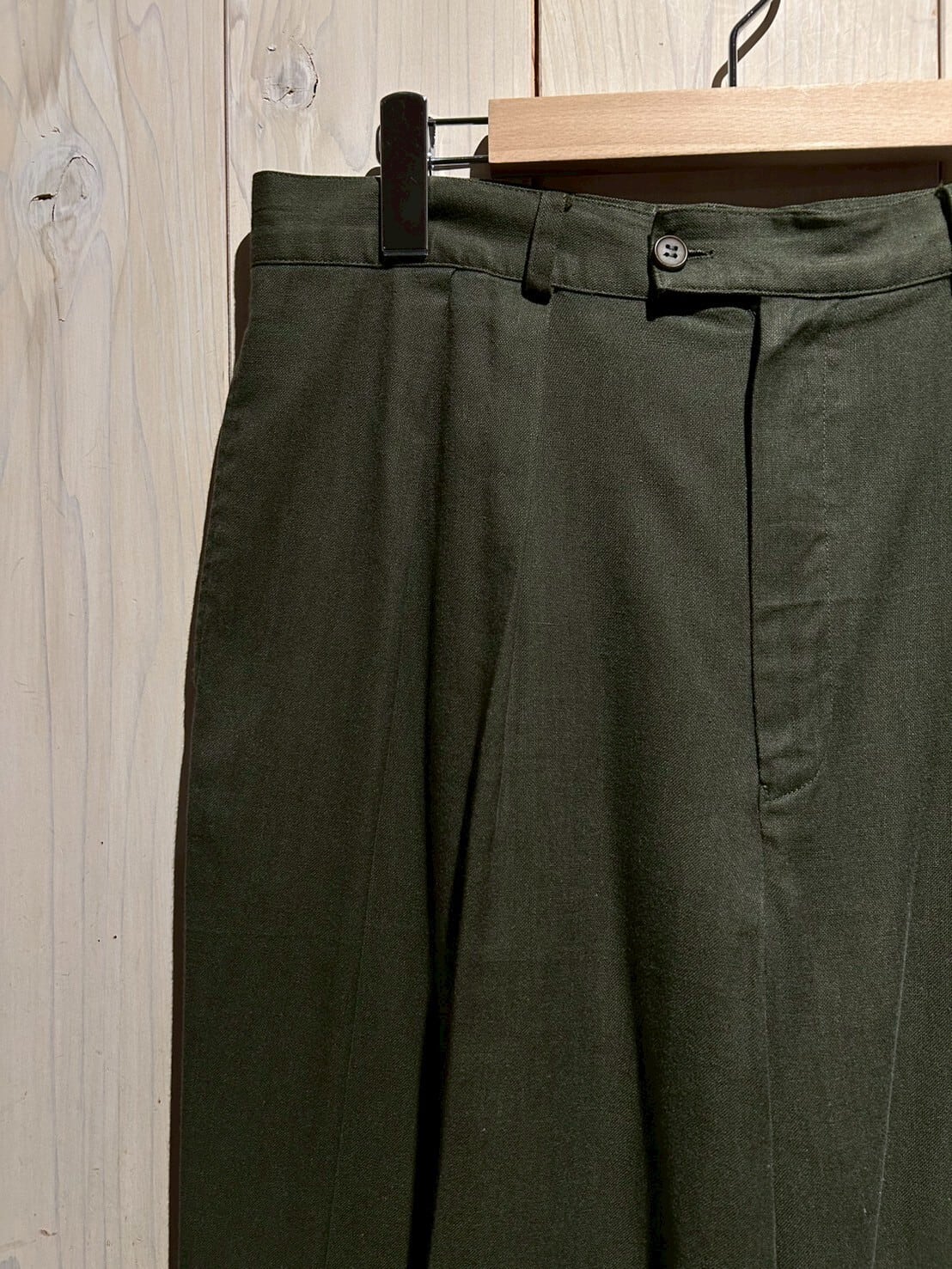 パンツはインナーをタックインしても綺麗なシルエットバランスを保つことができるセンタープレス入り。また、2タックが施されているため腰周りにゆとりを持ちながら、足元に向かいストンと落ちる、ゆったりとした美しいシルエットで着用可能。