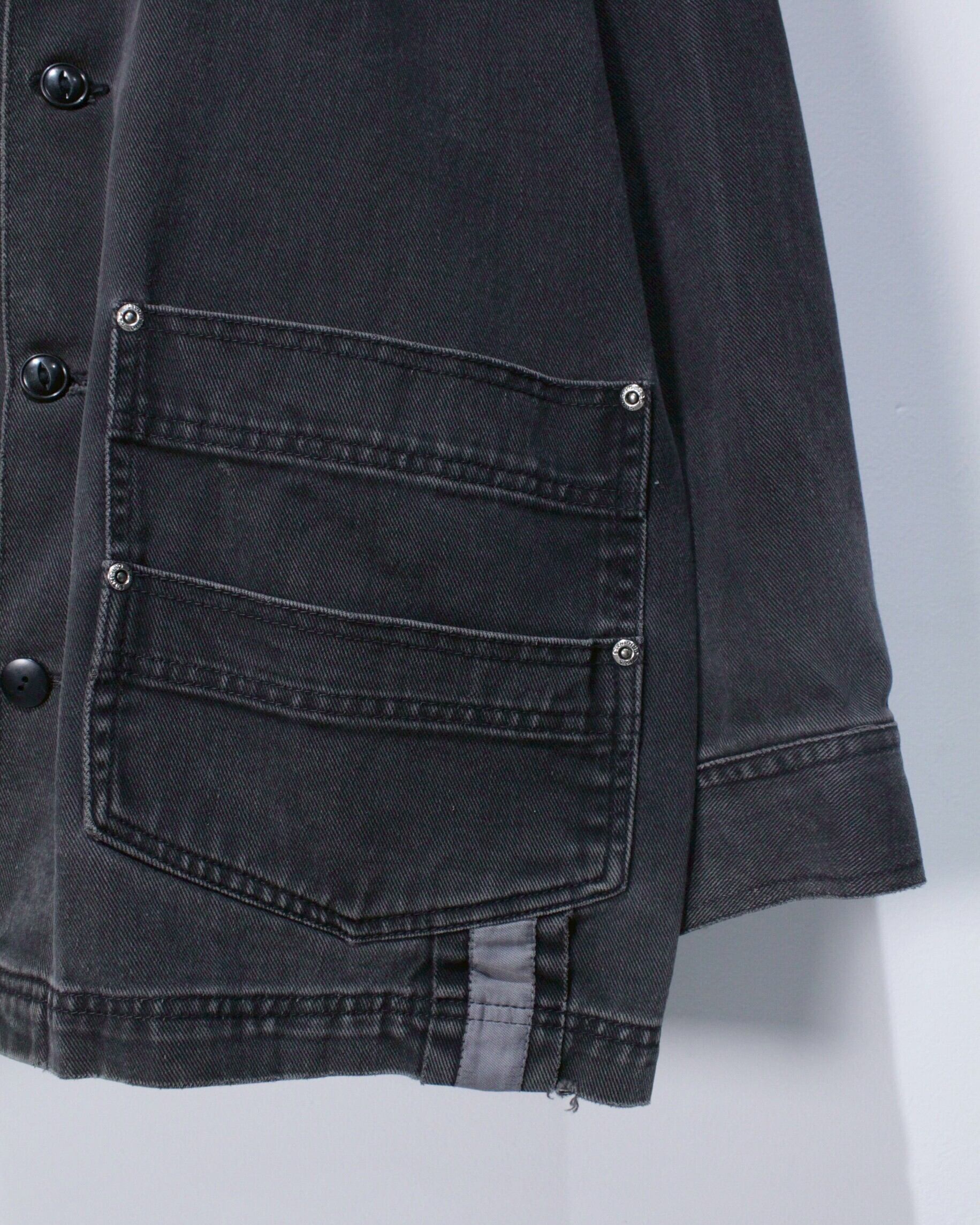 古着業界でも稀少価値が高まったブラックデニムのデニムジャケットより、ユーロモールスキンを彷彿とする美しいフェードが効いた逸品。