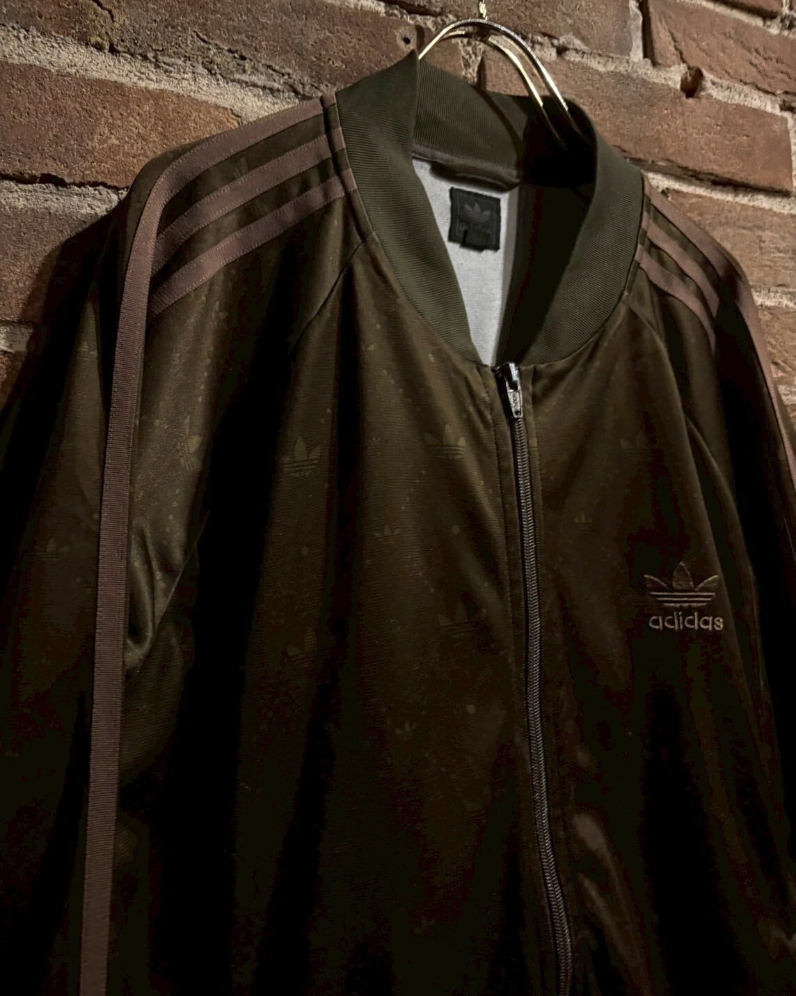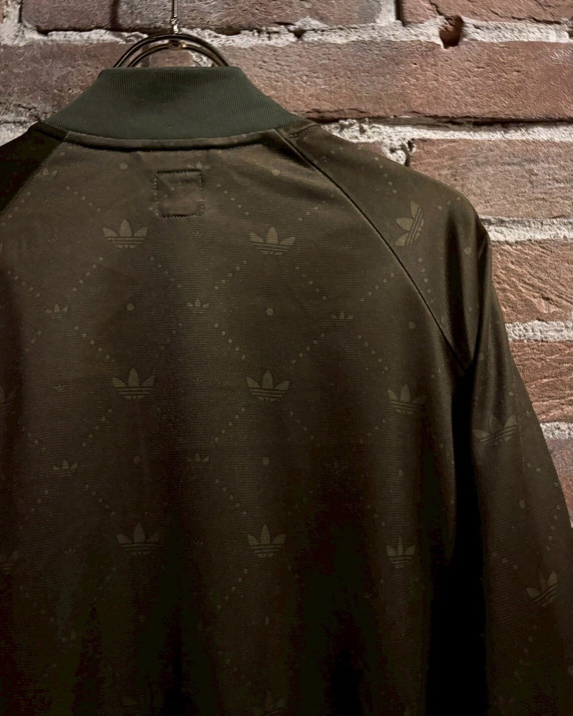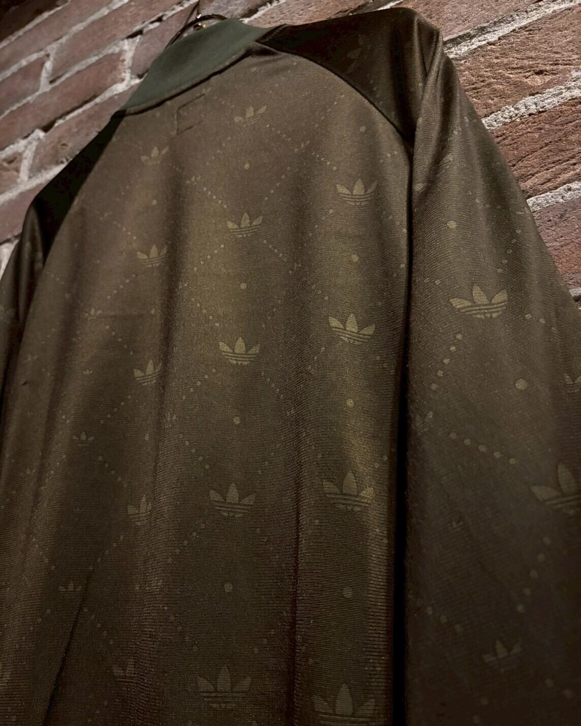 左胸にはトレフォイルロゴの刺繍、アームには3ストライプス。ブランドらしさがしっかりとありながら、光の当たり加減で浮き出るモノグラム調のロゴがめちゃくちゃイケてますね、、、