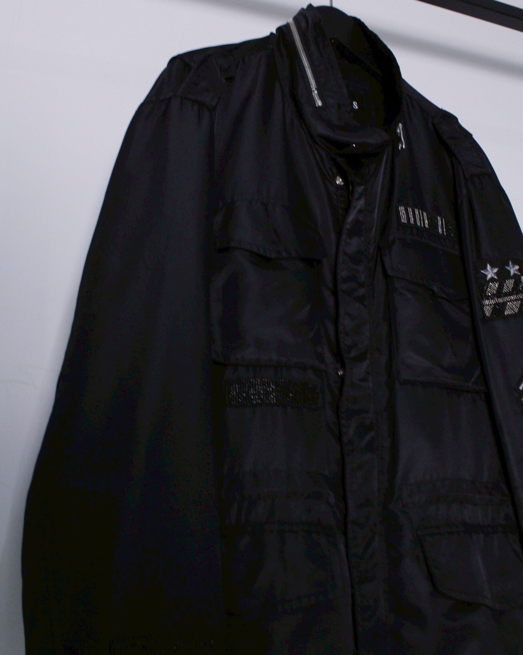 光沢を放つナイロンを用いて、ミリタリーウェアの定番でもあり、傑作とも謳われるM-65 フィールドジャケットの型に落とし込んだジャケット。