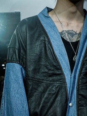 レザー、デニムは経年変化を楽しむことができ、着用を重ねるほどに味わい深い表情へと変化。それに加えてリメイクならではのデザイン性も兼ね備えた、スペシャルな1着です。