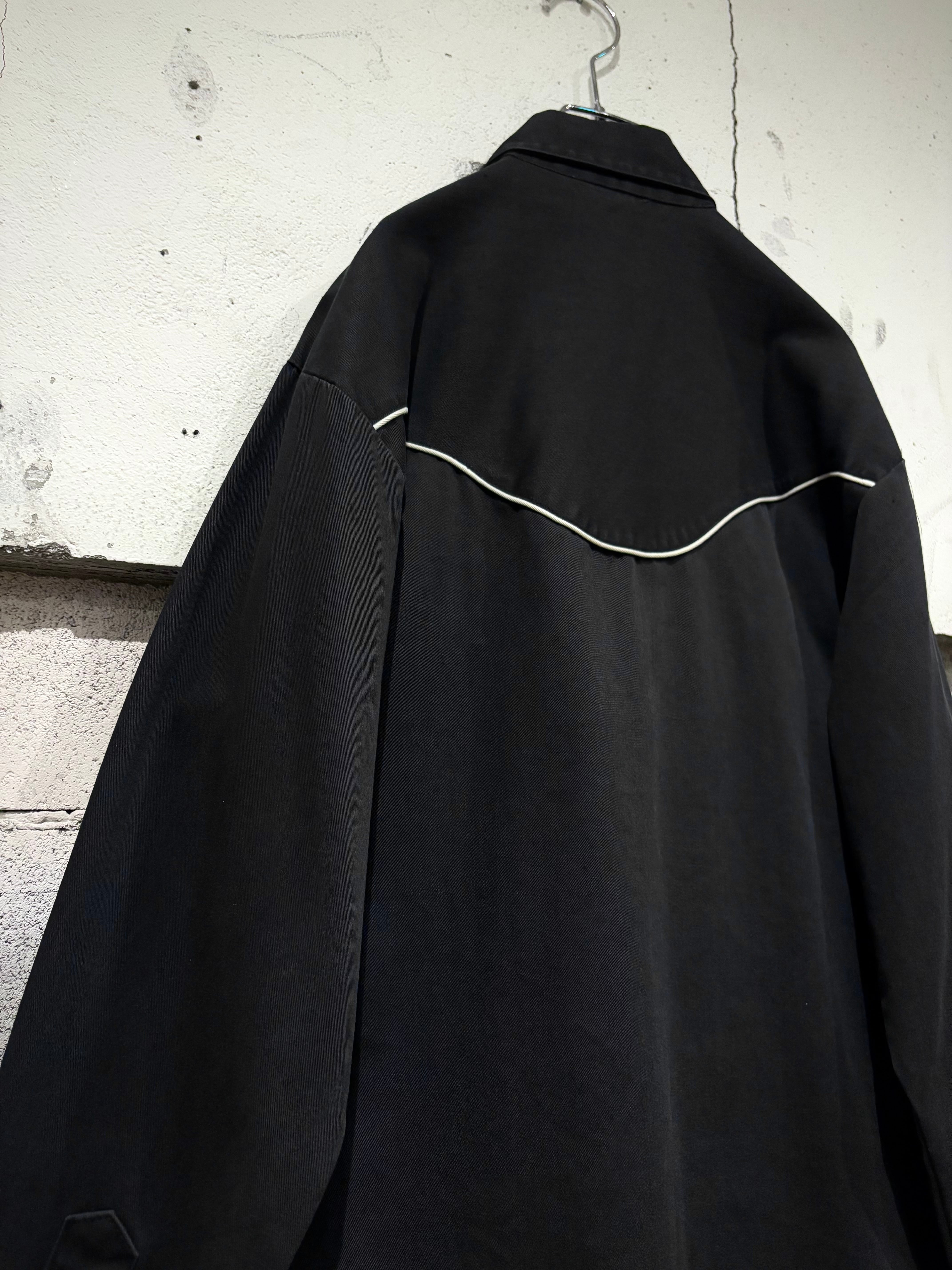 この年代特有の大きめの襟、ウエスタンヨークにスナップボタン、スマイルポケット、パイピングとウエスタン特有のディテールに、モノトーンのカラーリングが相まって、モードな雰囲気を漂わせる仕上がりに。