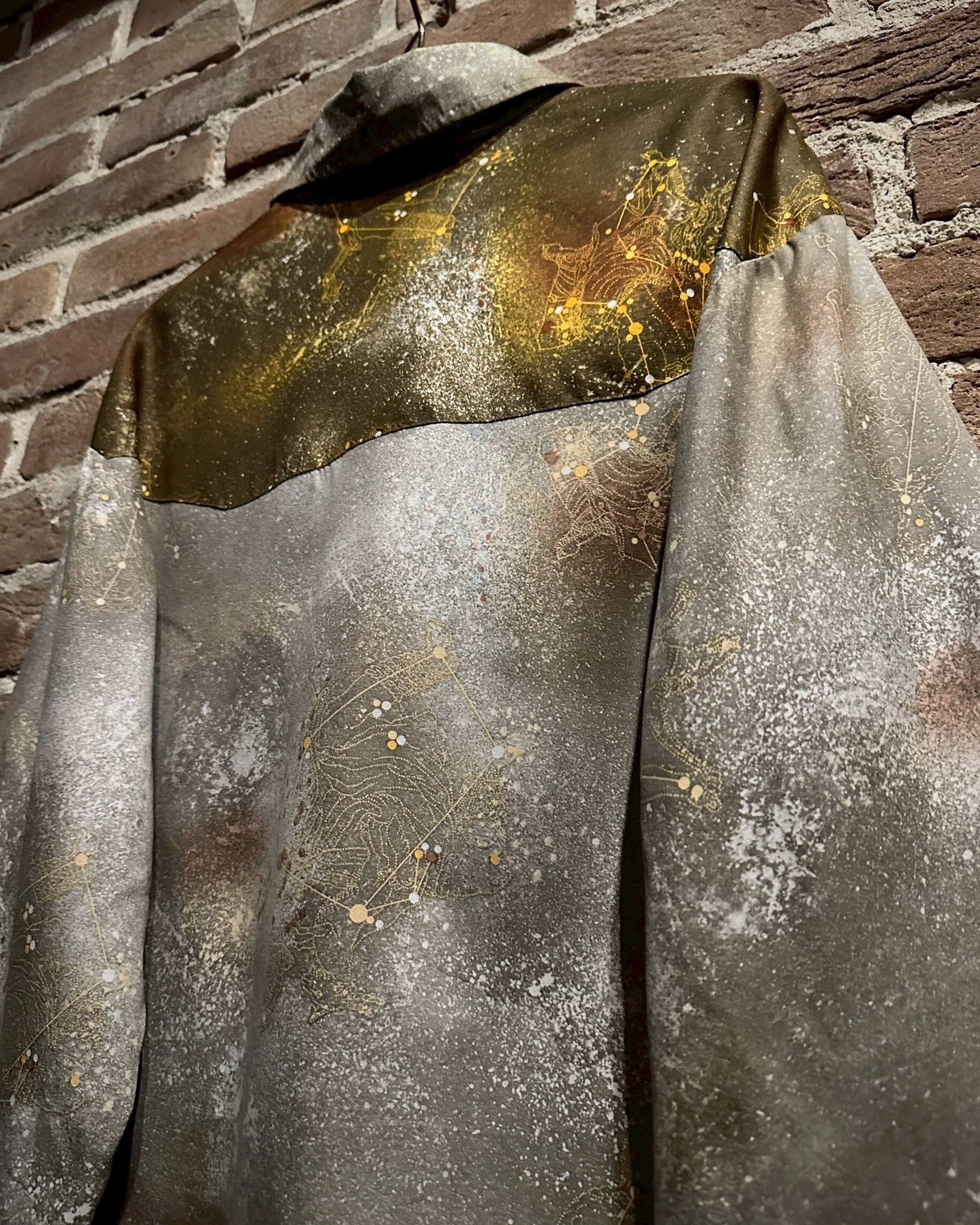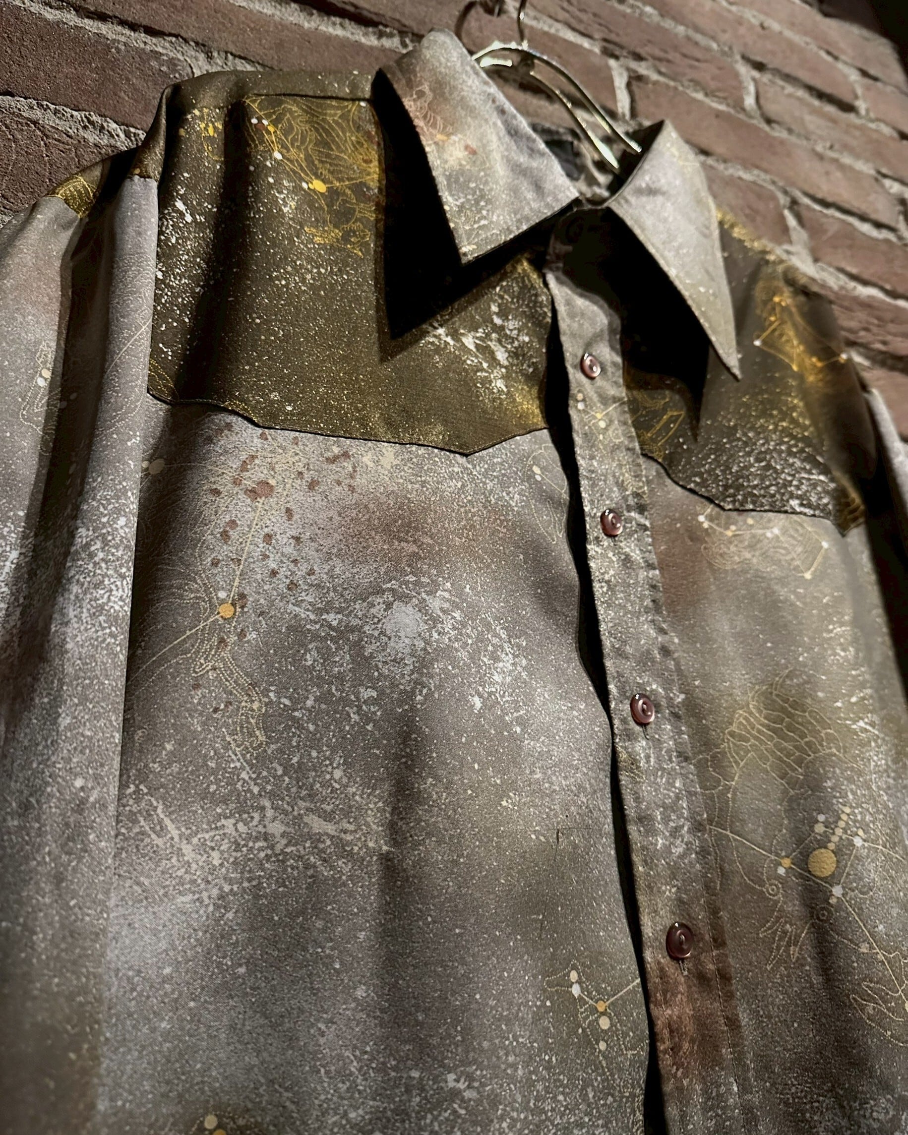 サラリと軽やかな素材を用いたボディに、星座のデザインを載せた長袖シャツ。