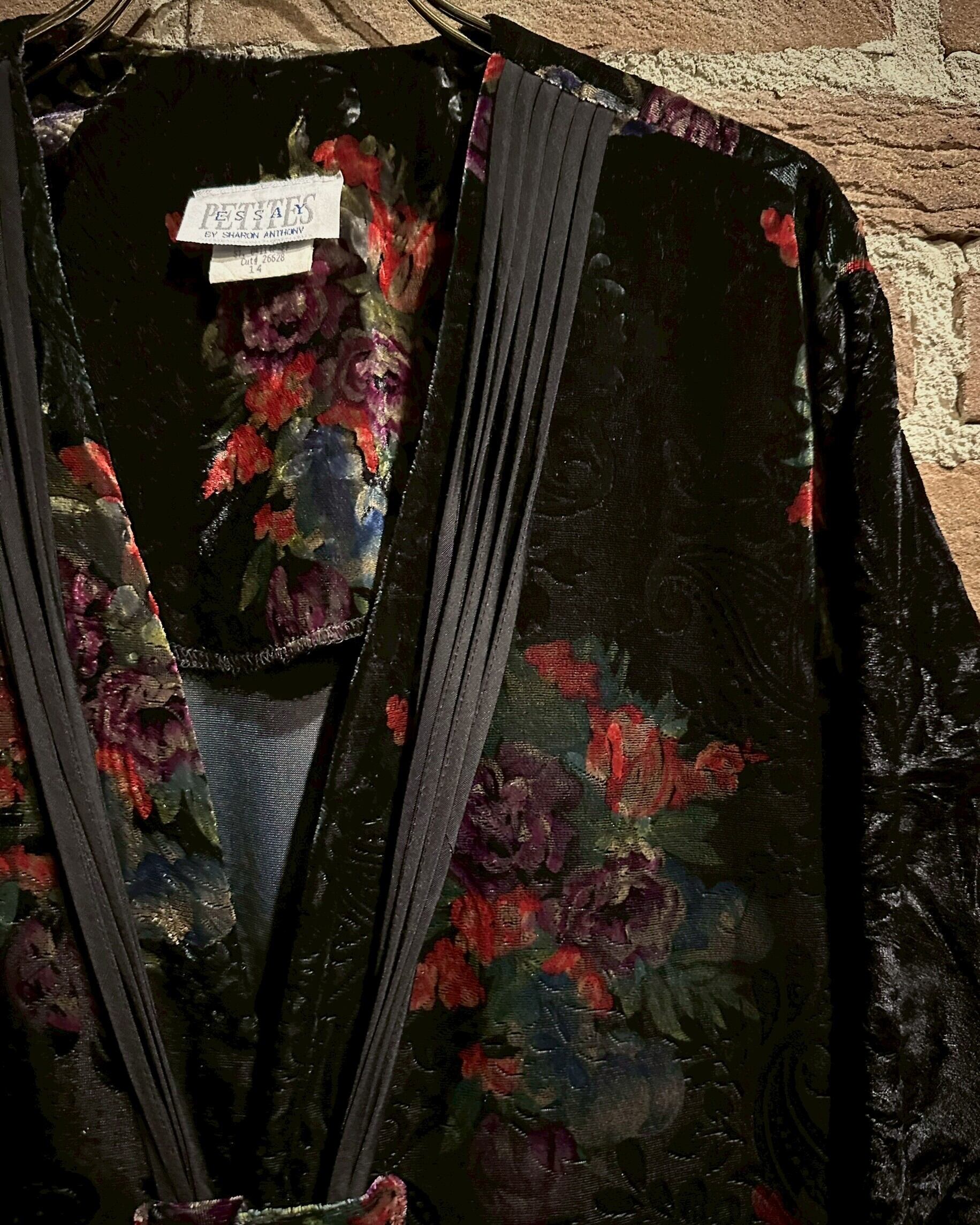鈍い光沢を放つベロアを用いて、美しい花を載せたベロア羽織りジャケット。