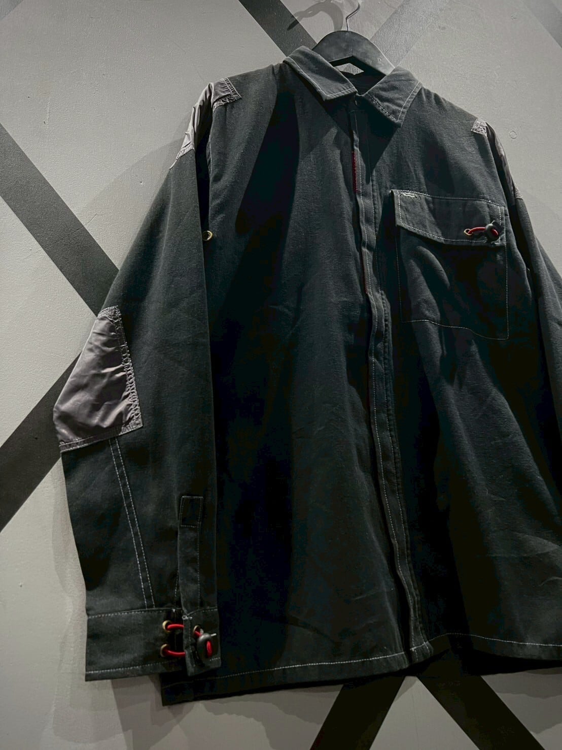 ソリッドなルックスかつテクニカルなギミックが光るジャケット。当店らしい、モードな雰囲気を纏った長袖シャツの逸品です。