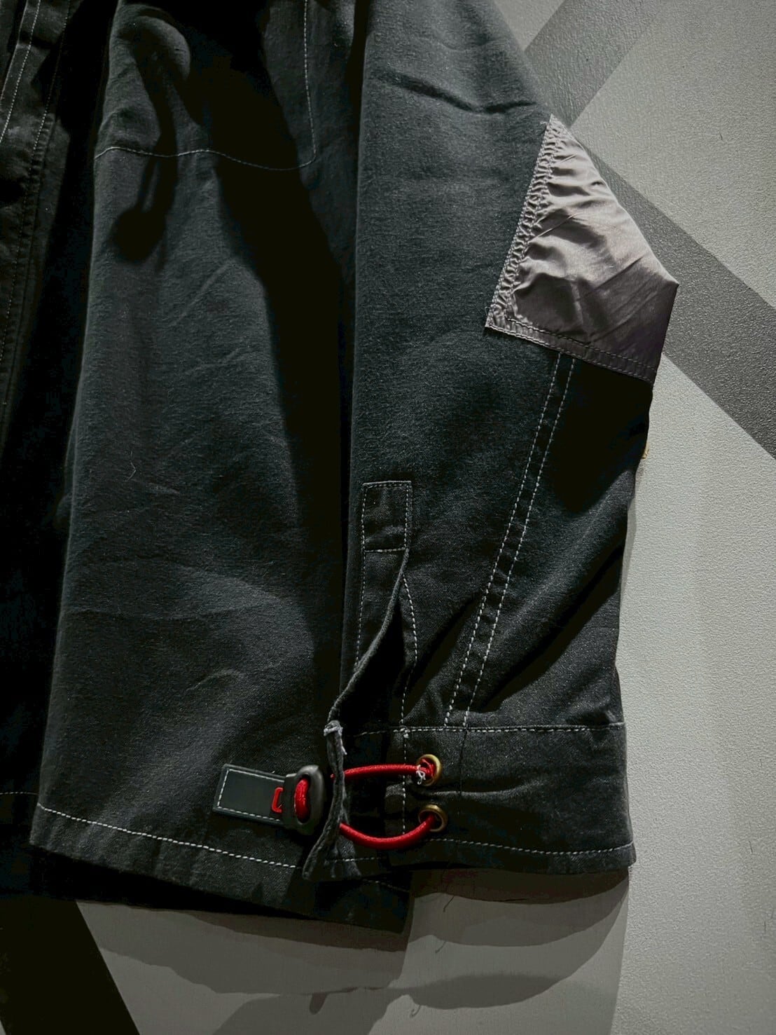 肘や肩にナイロンを用いて切り替えを施した上、左胸、背面にはインパクトのある大きめのフラップポケットをON。さらにフラップと袖口にはドローコードのギミックと、服好きの心を射抜かれるディテールが盛り沢山。