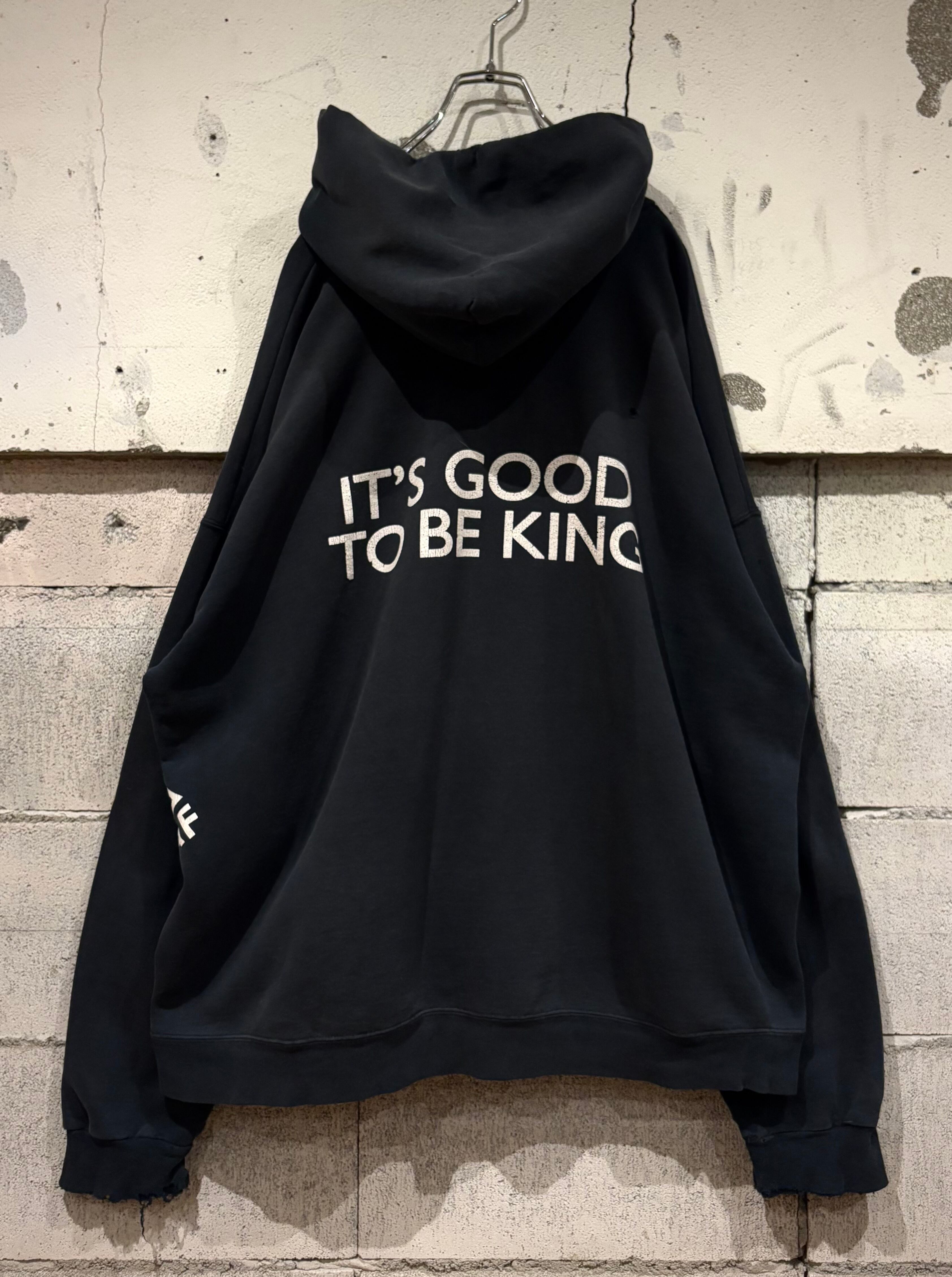 ボディ左下の方には山を彷彿とさせる三角のモチーフにクラウン、背面には"It's good to be king"のメッセージプリント。