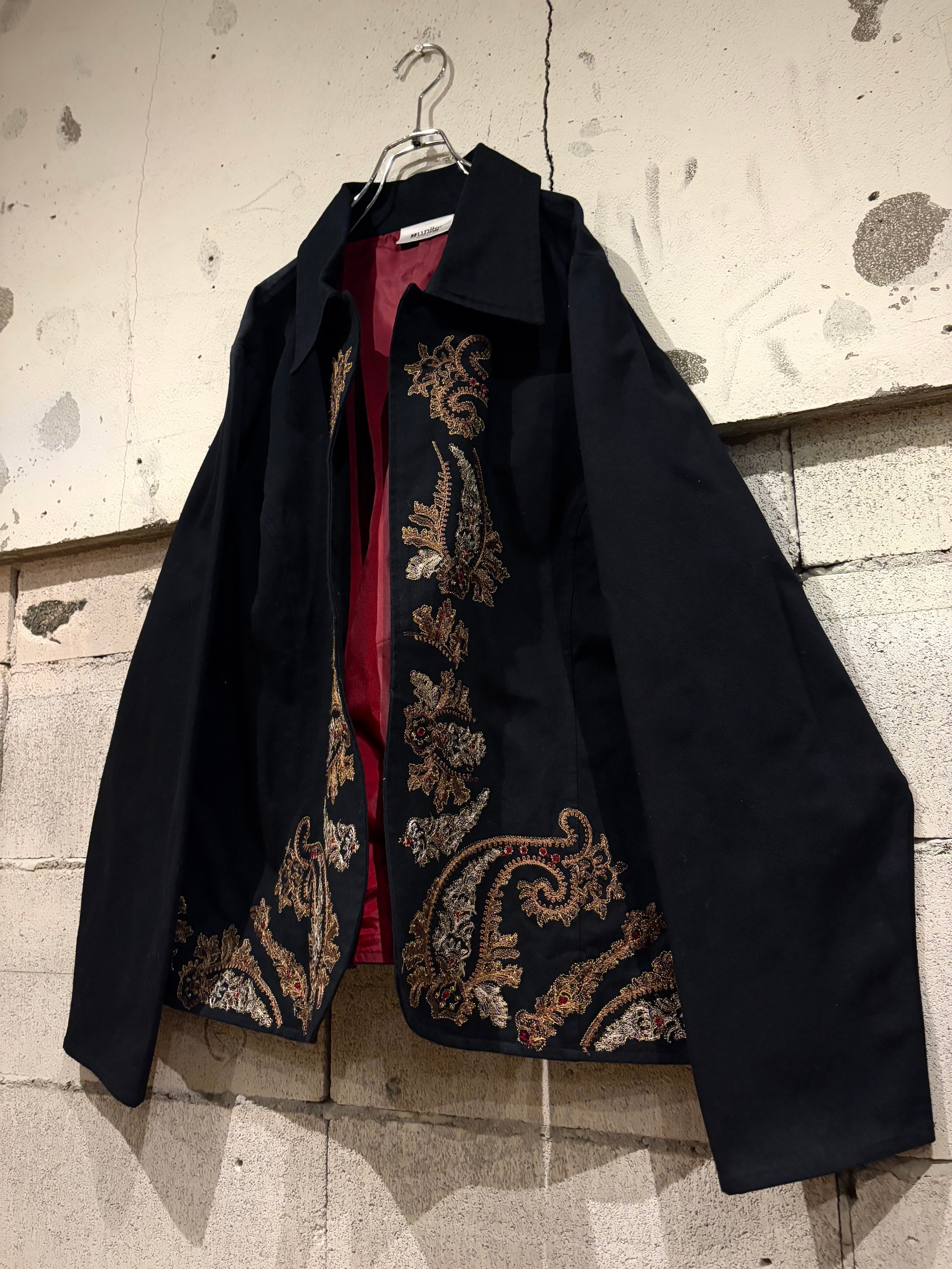 柔らかく薄手のコットンを用いたボディに、ザックリとした刺繍でペイズリー柄を表現した羽織ジャケット。