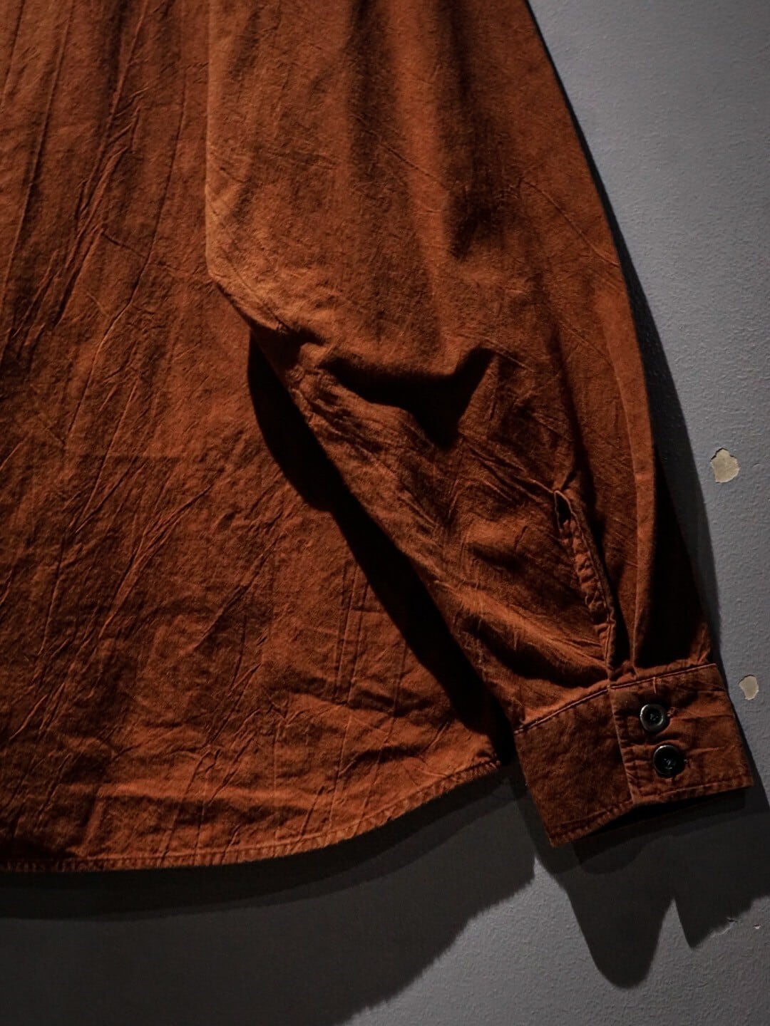 ライトオンスで仕上げた、軽やかな質感のブラウンカラーのボディに、キャバルリーシャツのディテールを載せた1着。