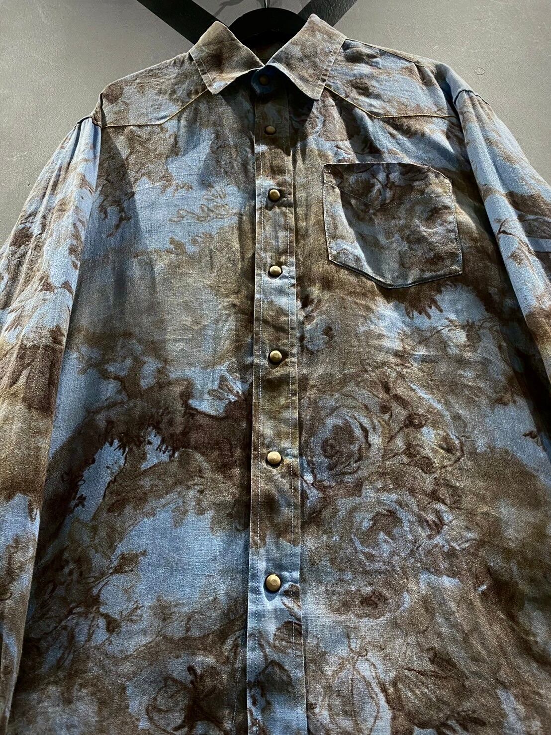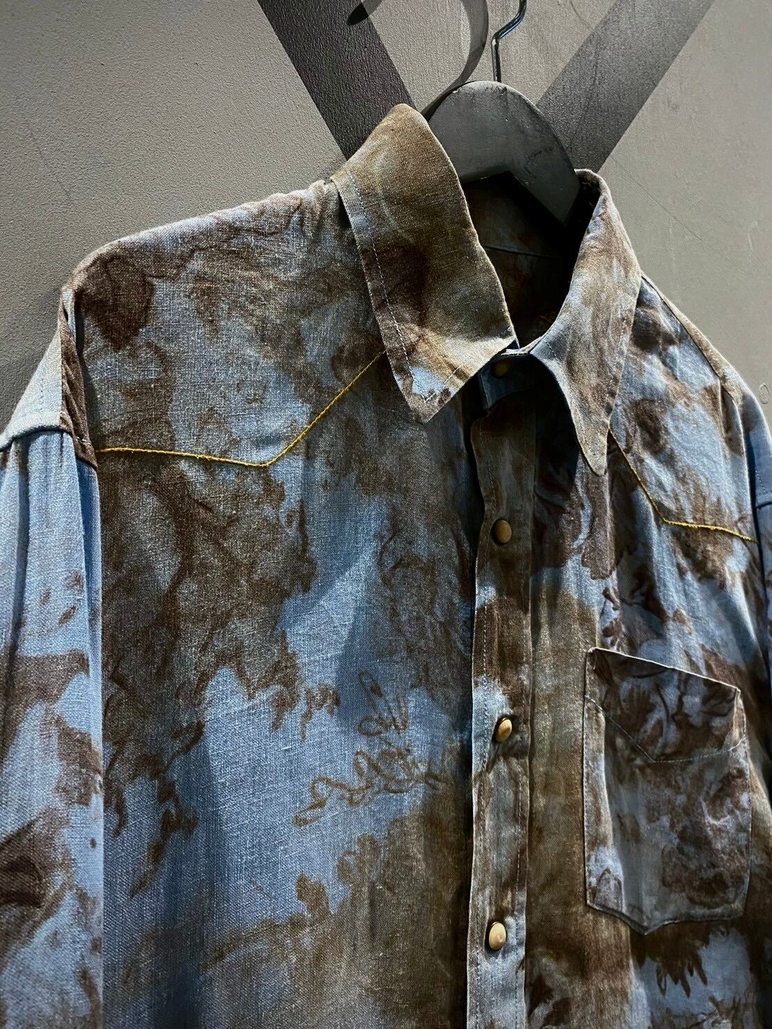 柔らかくもハリのあるリネンを使用したボディに、高級感漂う花柄を載せたウエスタンシャツ。