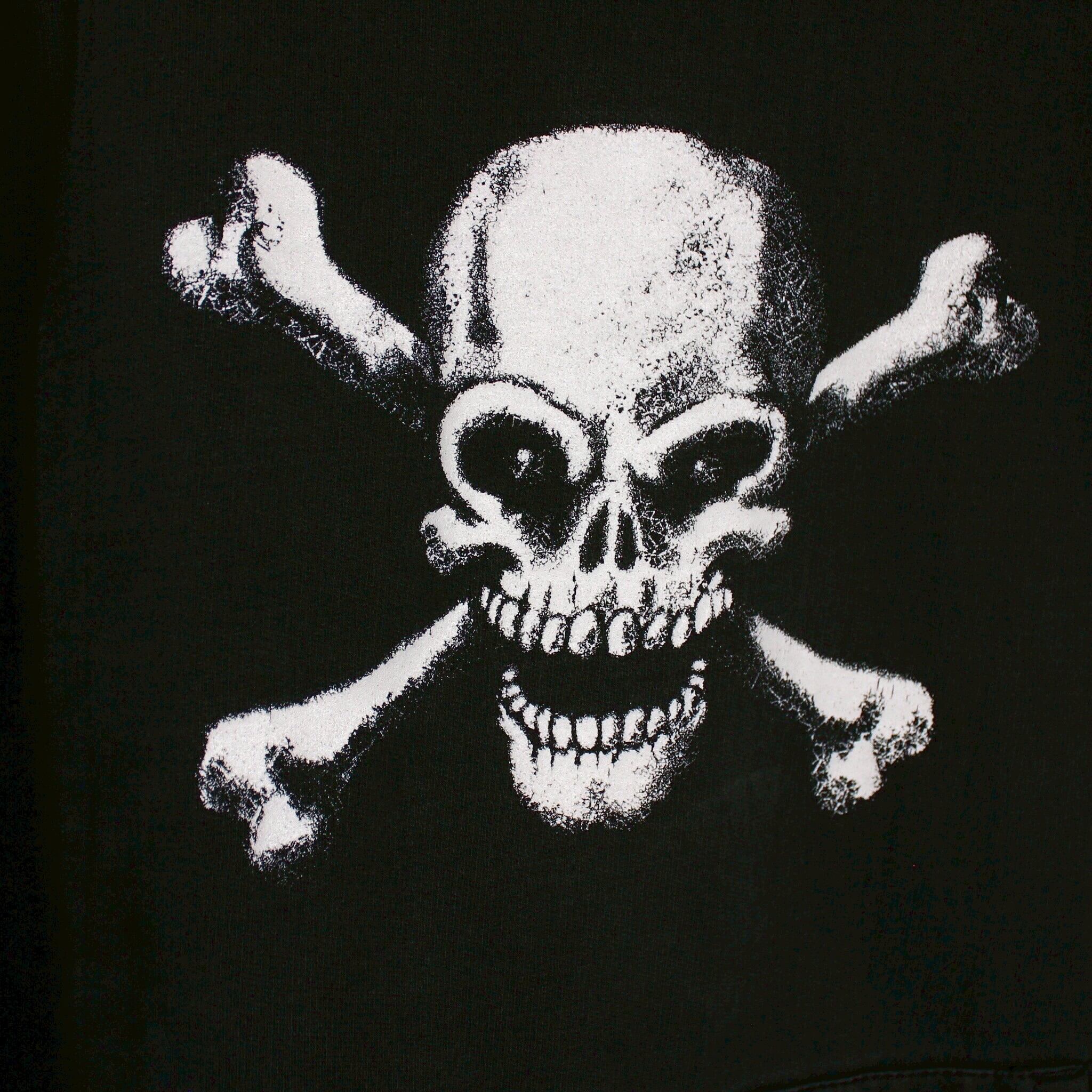ブラックのスウェットボディに、不敵な笑みを浮かべるスカルのプリントを施したスウェットフーディー。