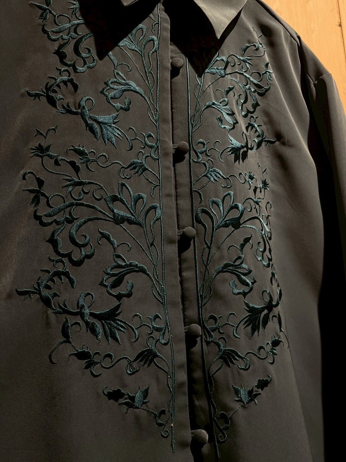 店頭でもバリエーション豊富に展開中の長袖シャツより、ワントーンの仕上がりながら、刺繍や随所のディテールによって存在感をムンムンに放つ1着です。