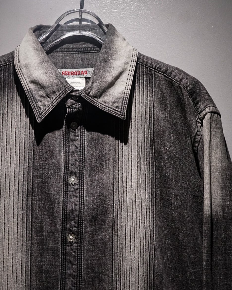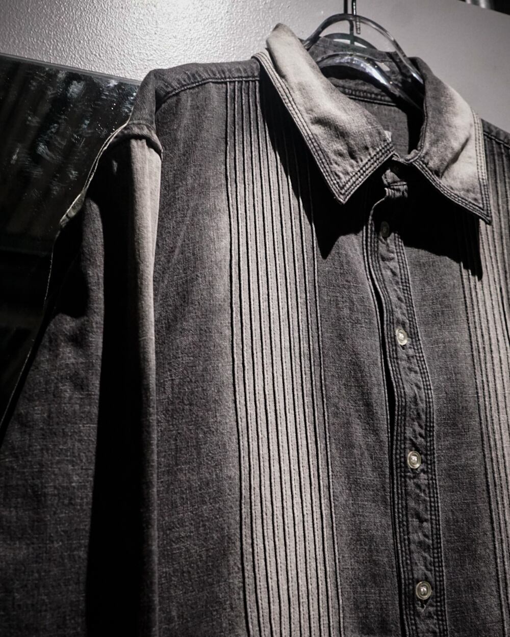 グレーと黒のモノトーンのカラーリングで絶妙なフェード感を表現したデニムシャツ。