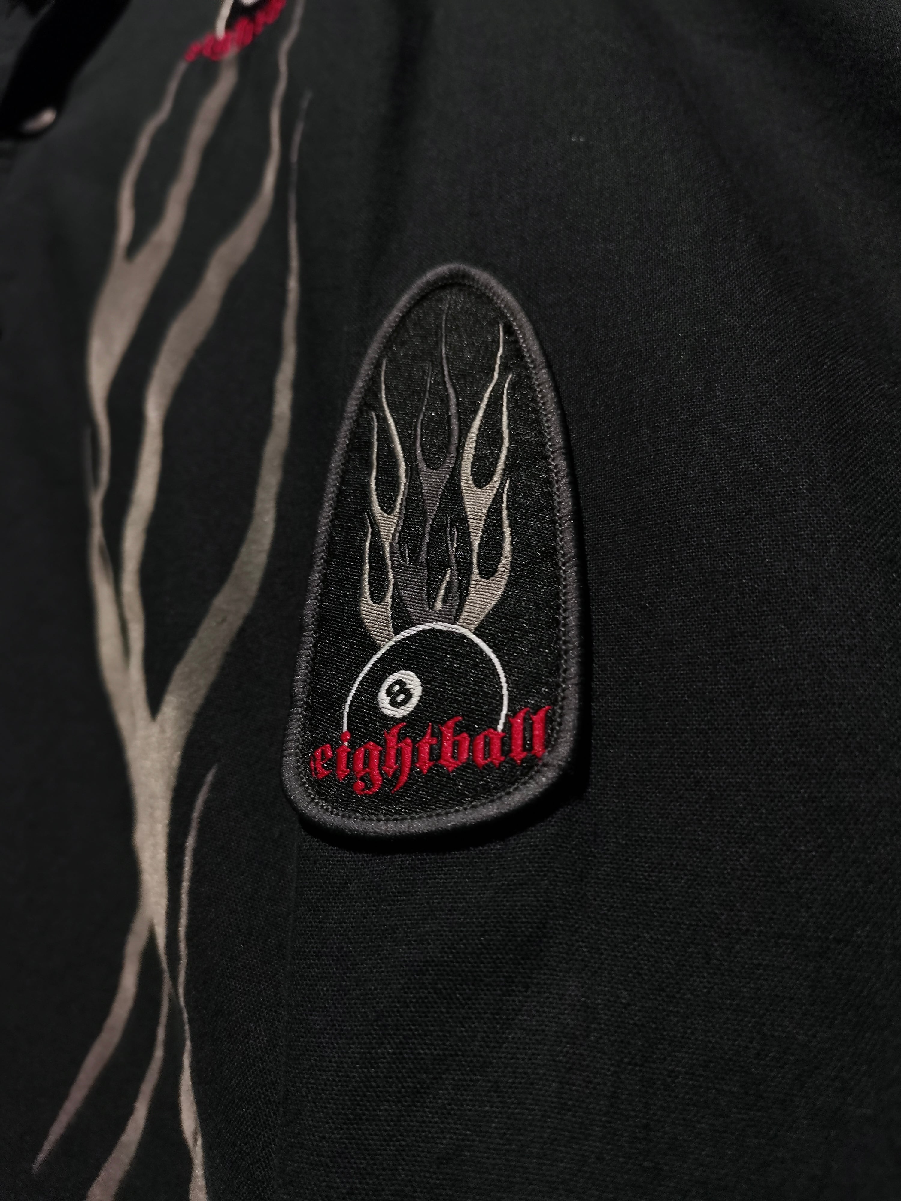 左胸には刺繍、左袖にはパッチでエイトボールのデザインを載せた全体にデザインを効かせた1着。
