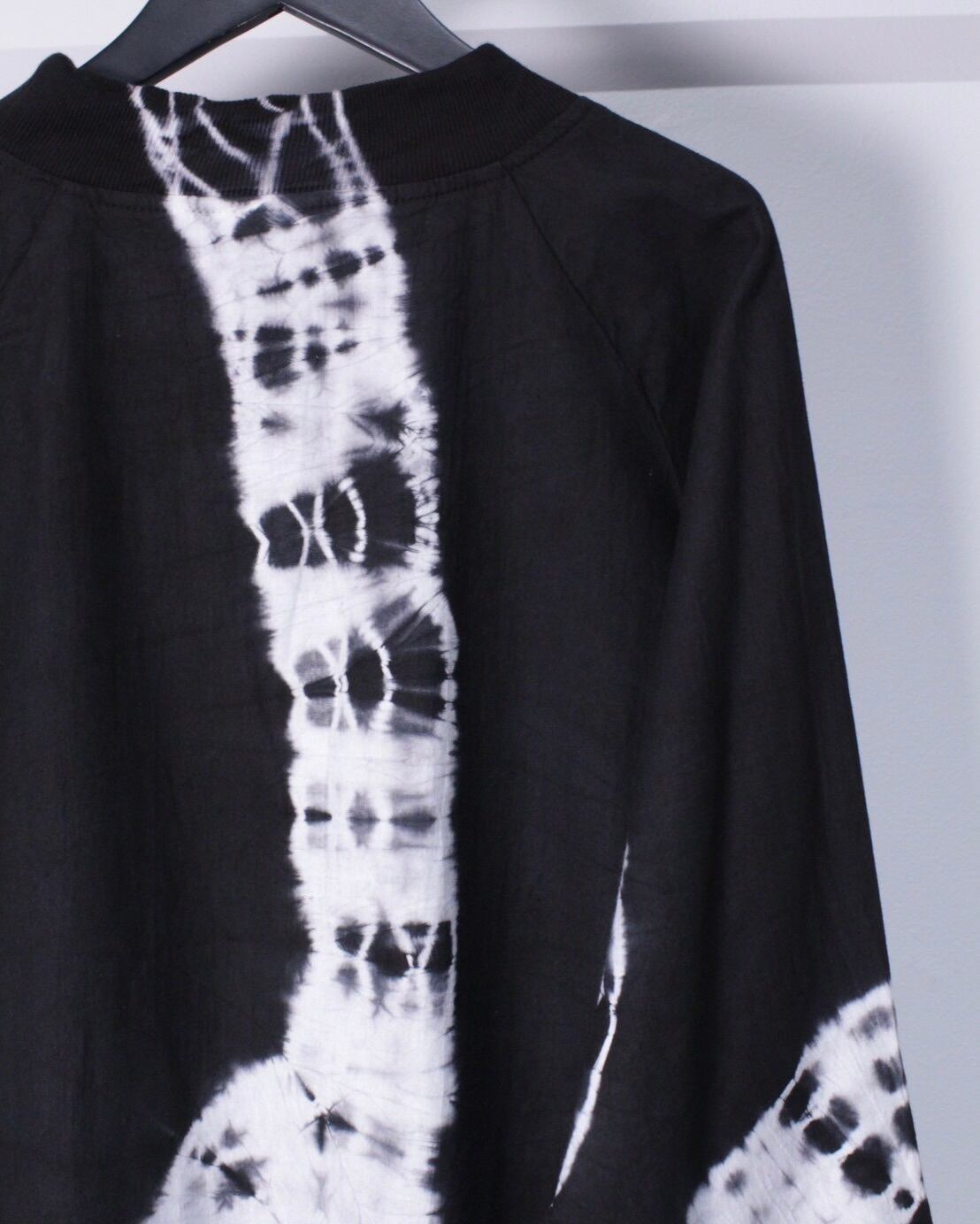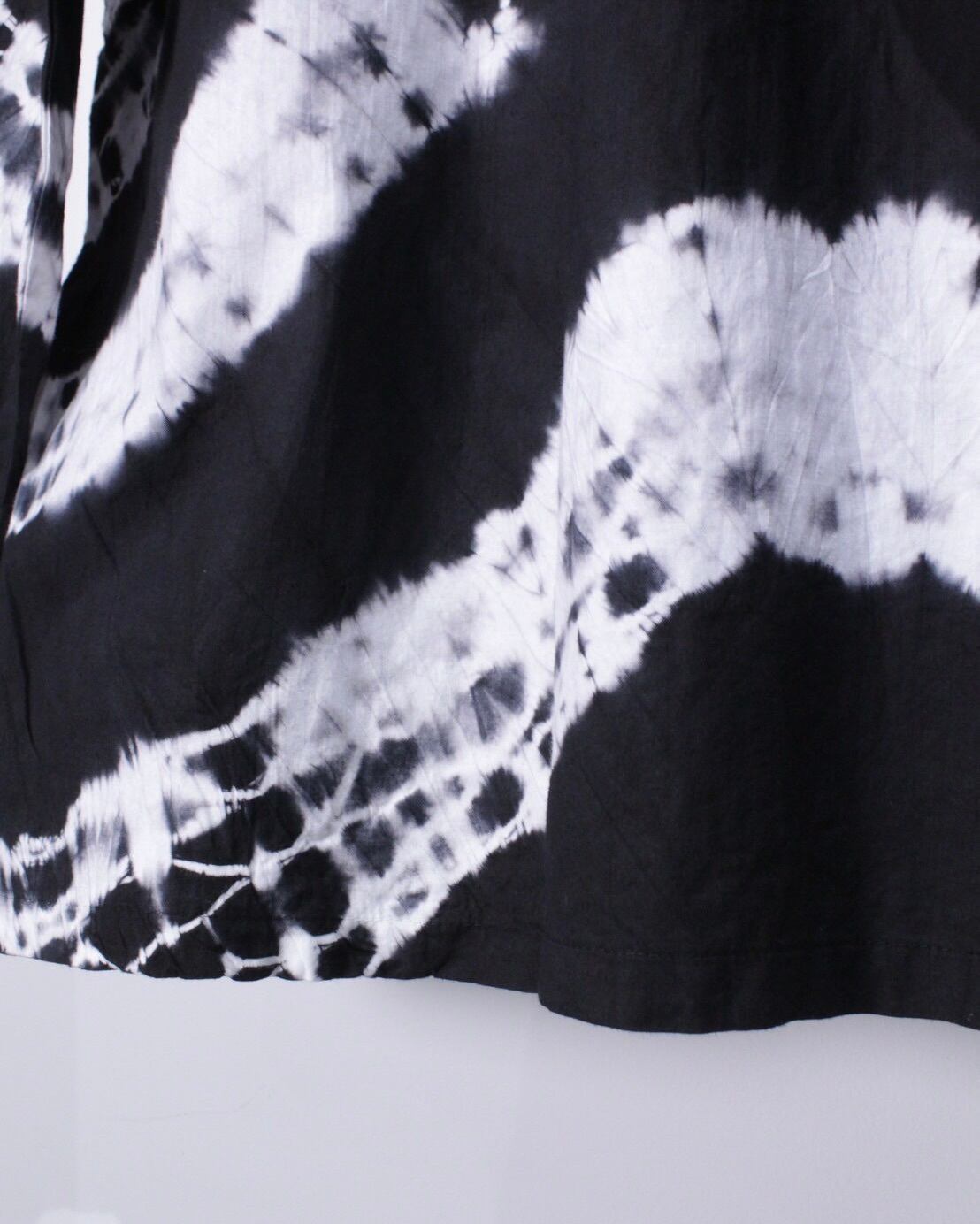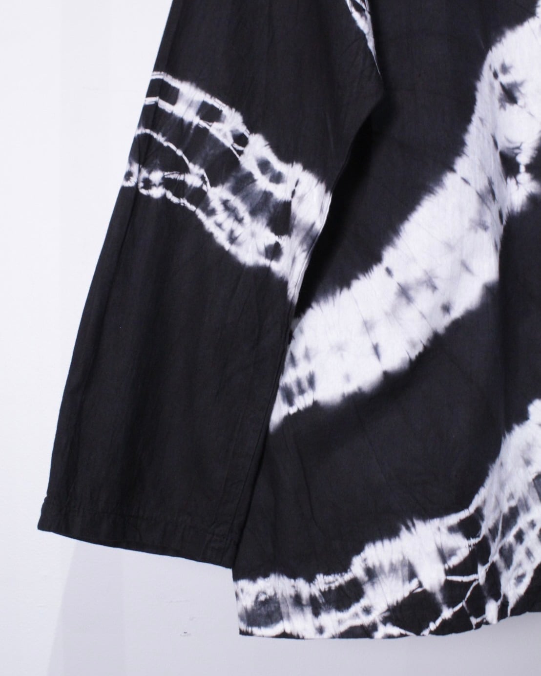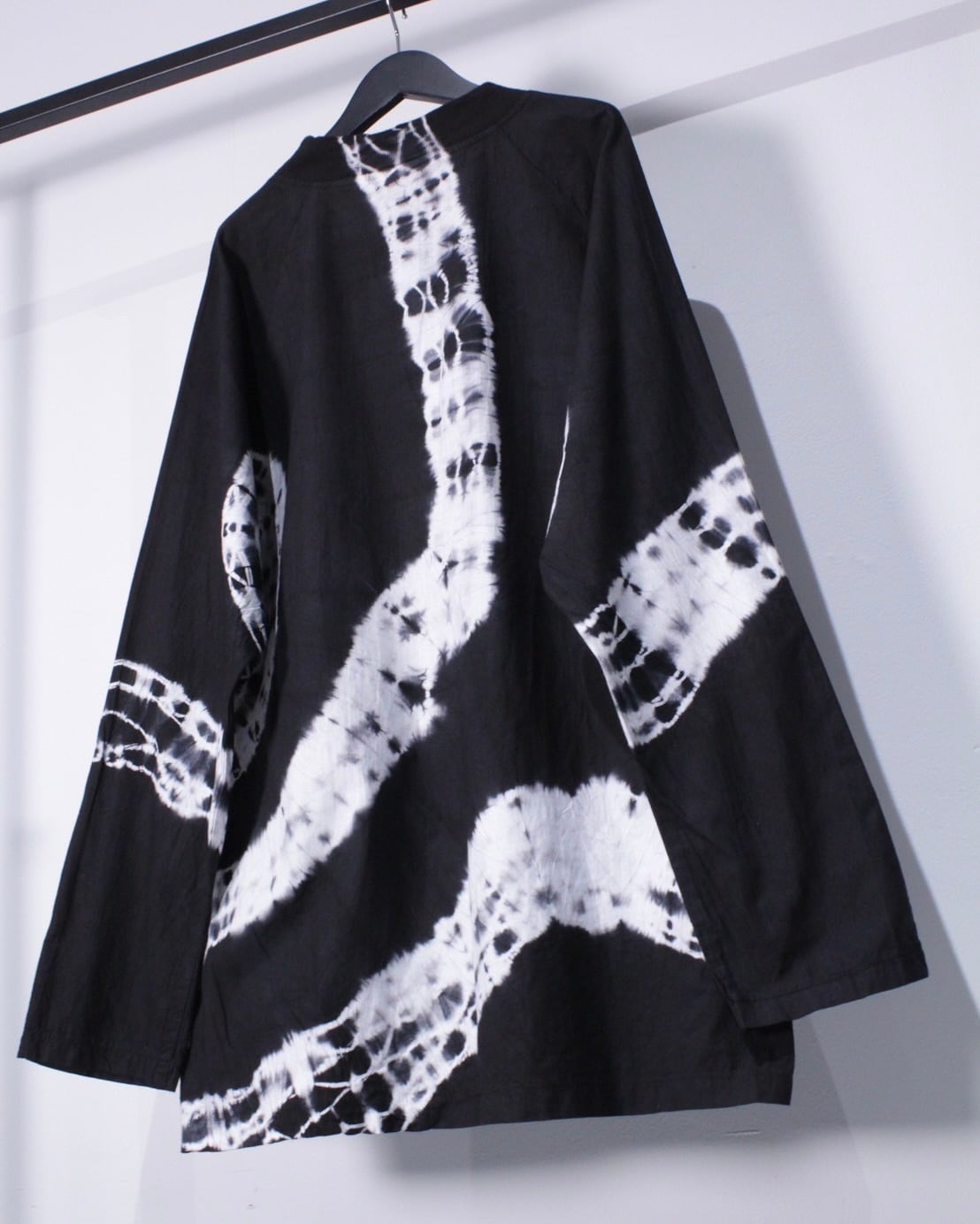 全体をモノトーンのタイダイ染めによって特有の柄を載せたプルオーバーシャツ。