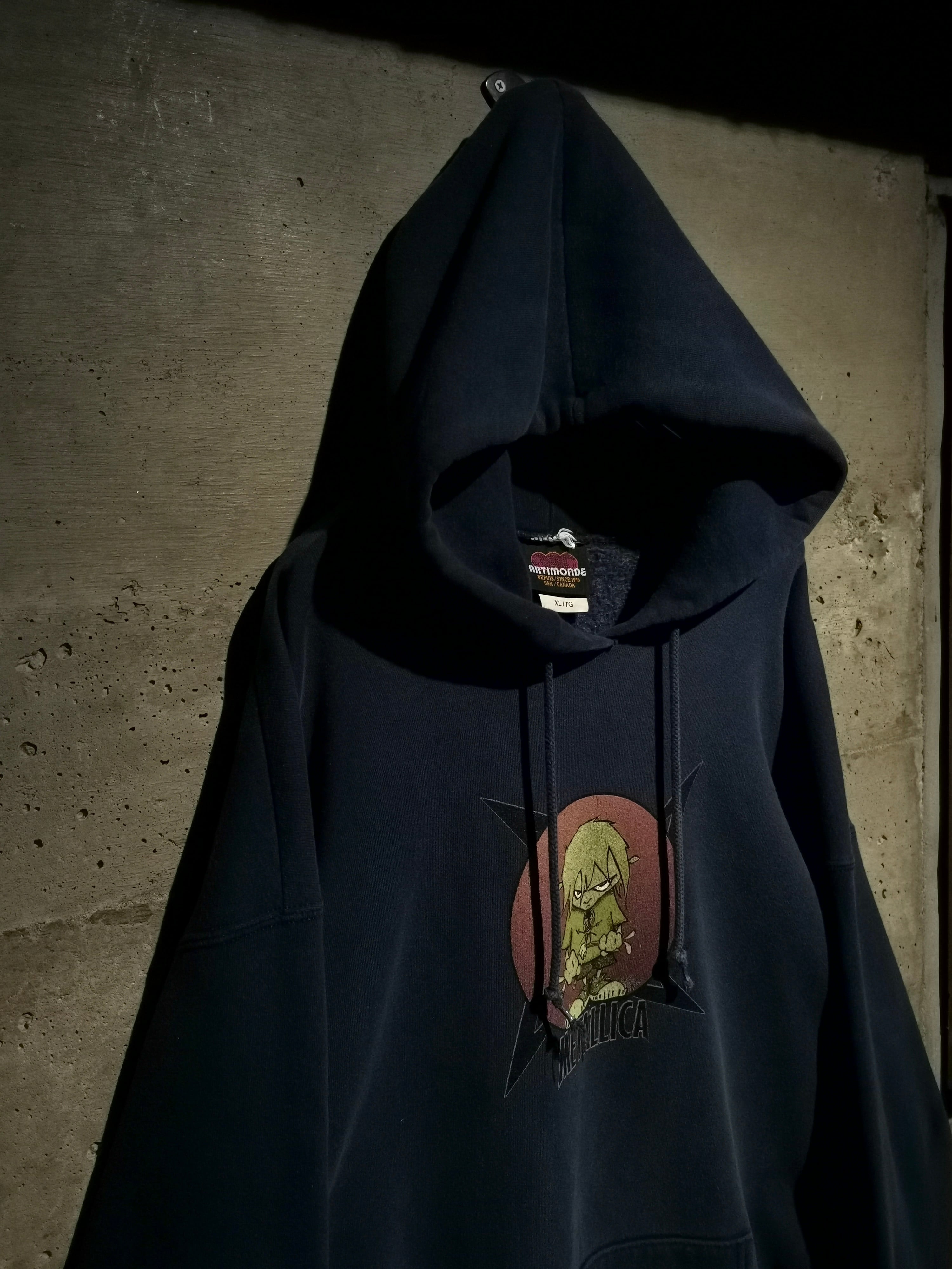 ARTIMONDOボディで、身幅、アームはゆったりとしたXL表記のグッドサイジング。ヴィンテージTシャツでも高い人気を誇り、高騰化が著しい"METALLCA"ですが、好デザインに良サイジング、コンディションを兼ね備えたフーディとなると中々お目にかかれません。