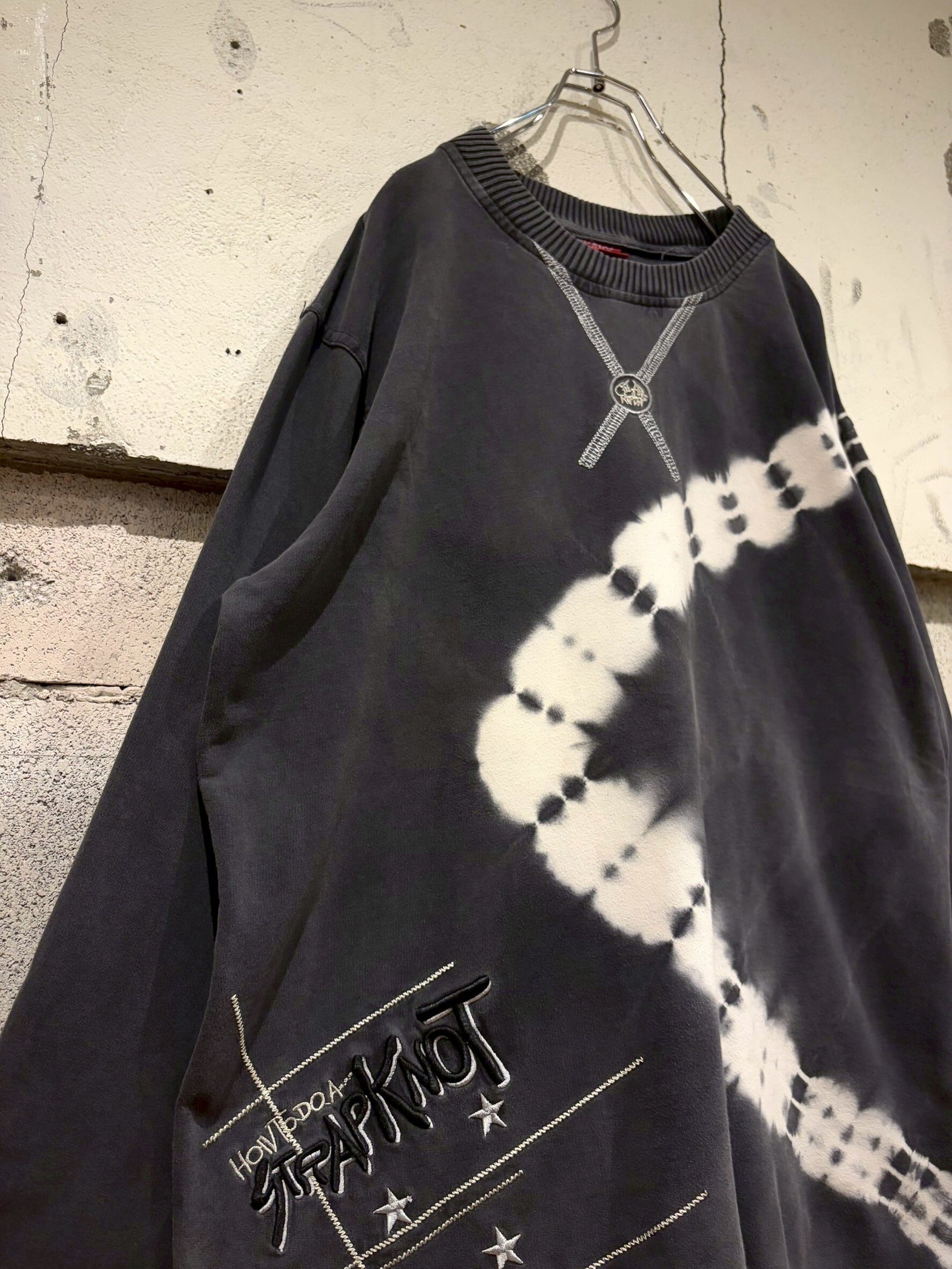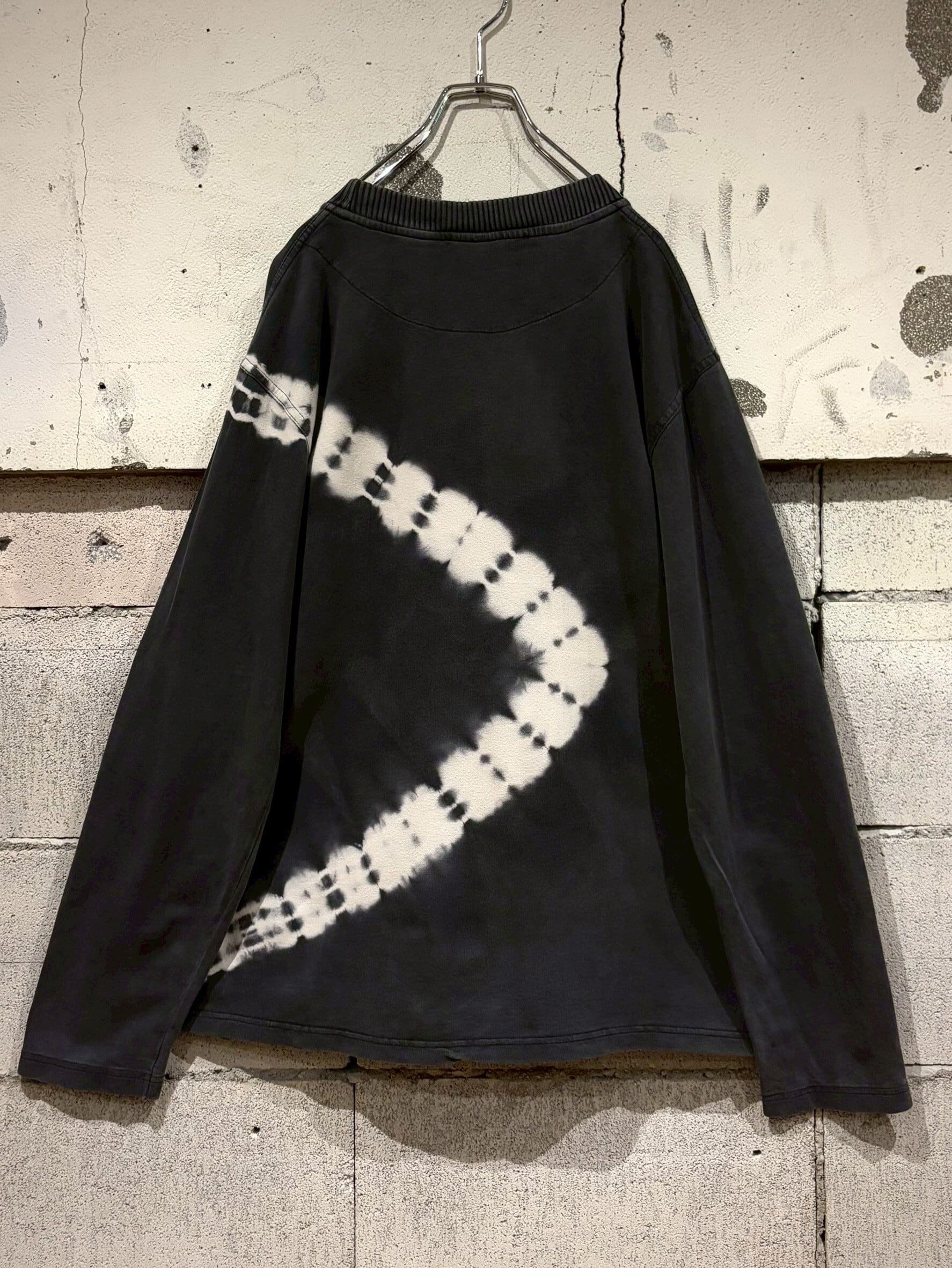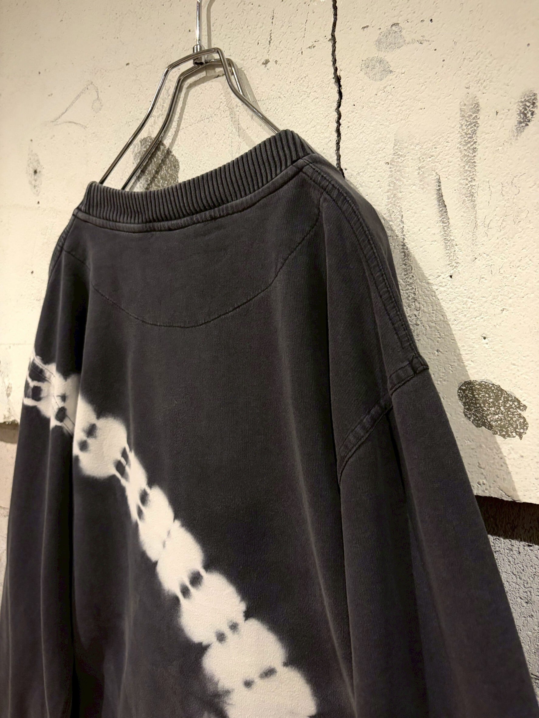 "染め"によって、ボディ左側に施された大胆なラインのデザインが印象的なスウェット。