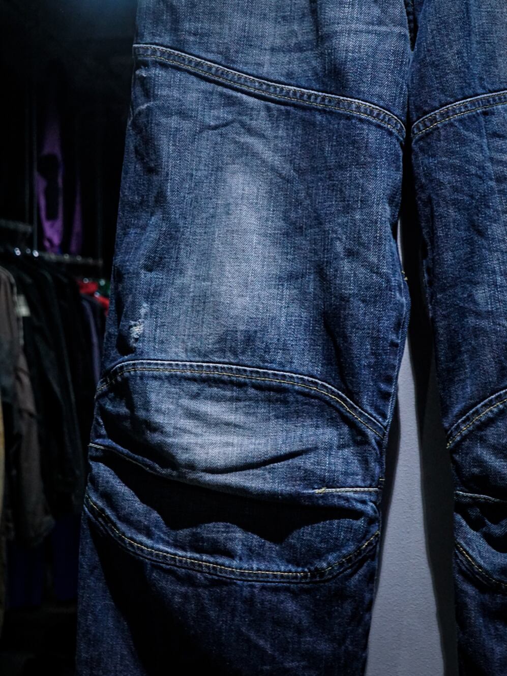 フェード感の素晴らしいデニム素材をベースに、膝あたりにダブルニーが施され、着用すると立体的に浮き出るようなシルエットを生み出した1本。こちらBALENCIAGAがサンプリング元として使用したことでも話題を呼びました。