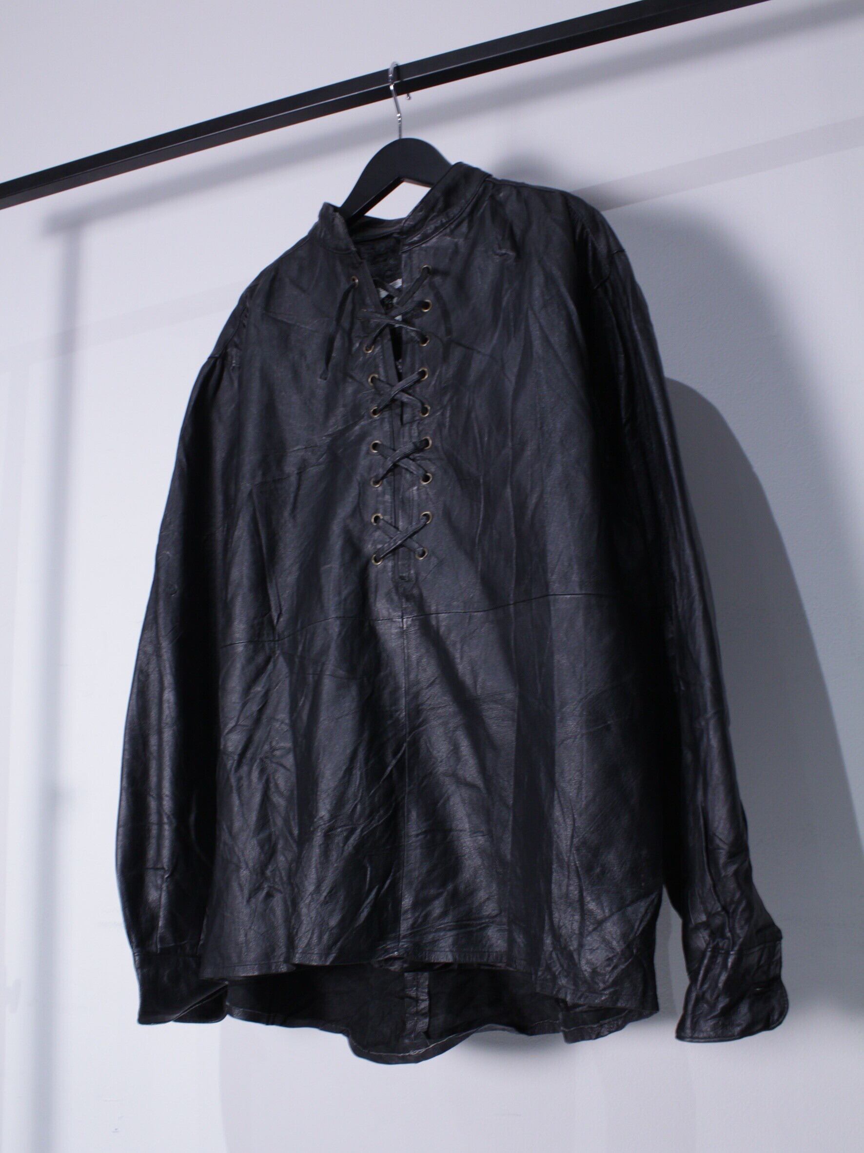 ハリのあるブラックレザーを用いた、稀有なレザーのプルオーバーのご紹介。