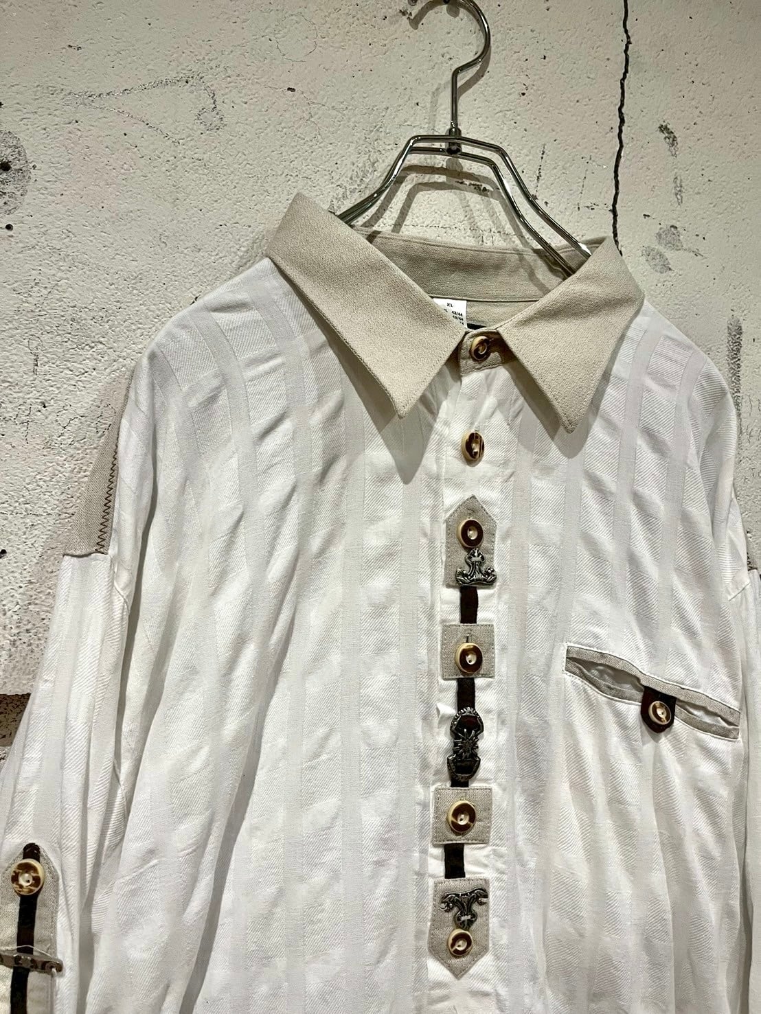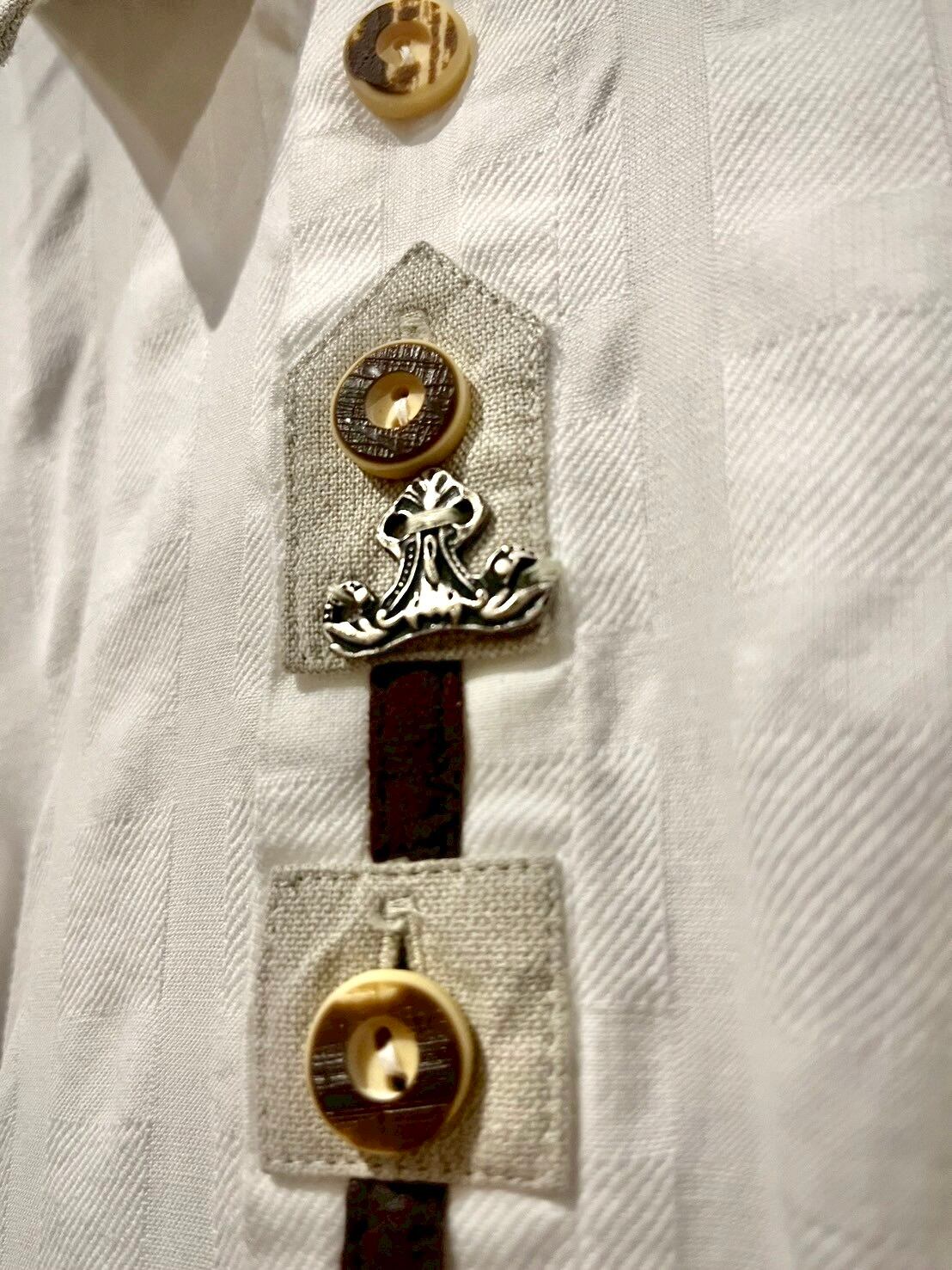 ナチュラルで柔らかな表情のコットンを用いたボディに、ボタンや装飾、刺繍が特徴的なチロリアンディテールが施された長袖シャツをご紹介致します。