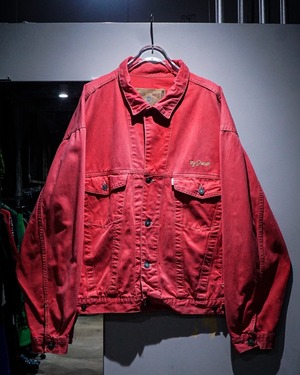 若干のフェード感が程よい、稀有な赤色のデニムジャケット。