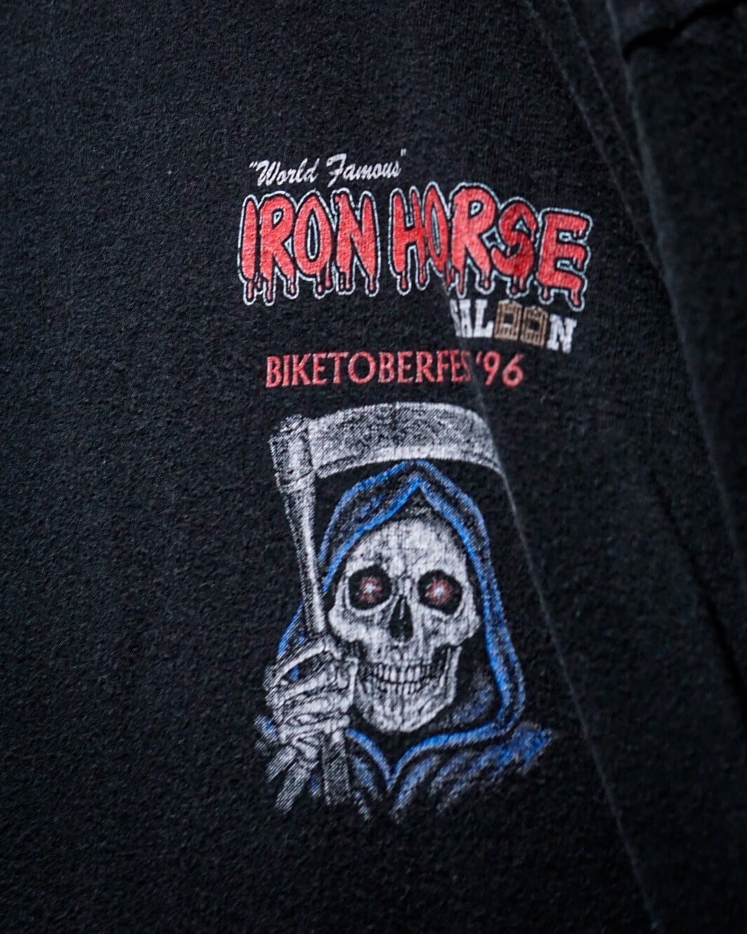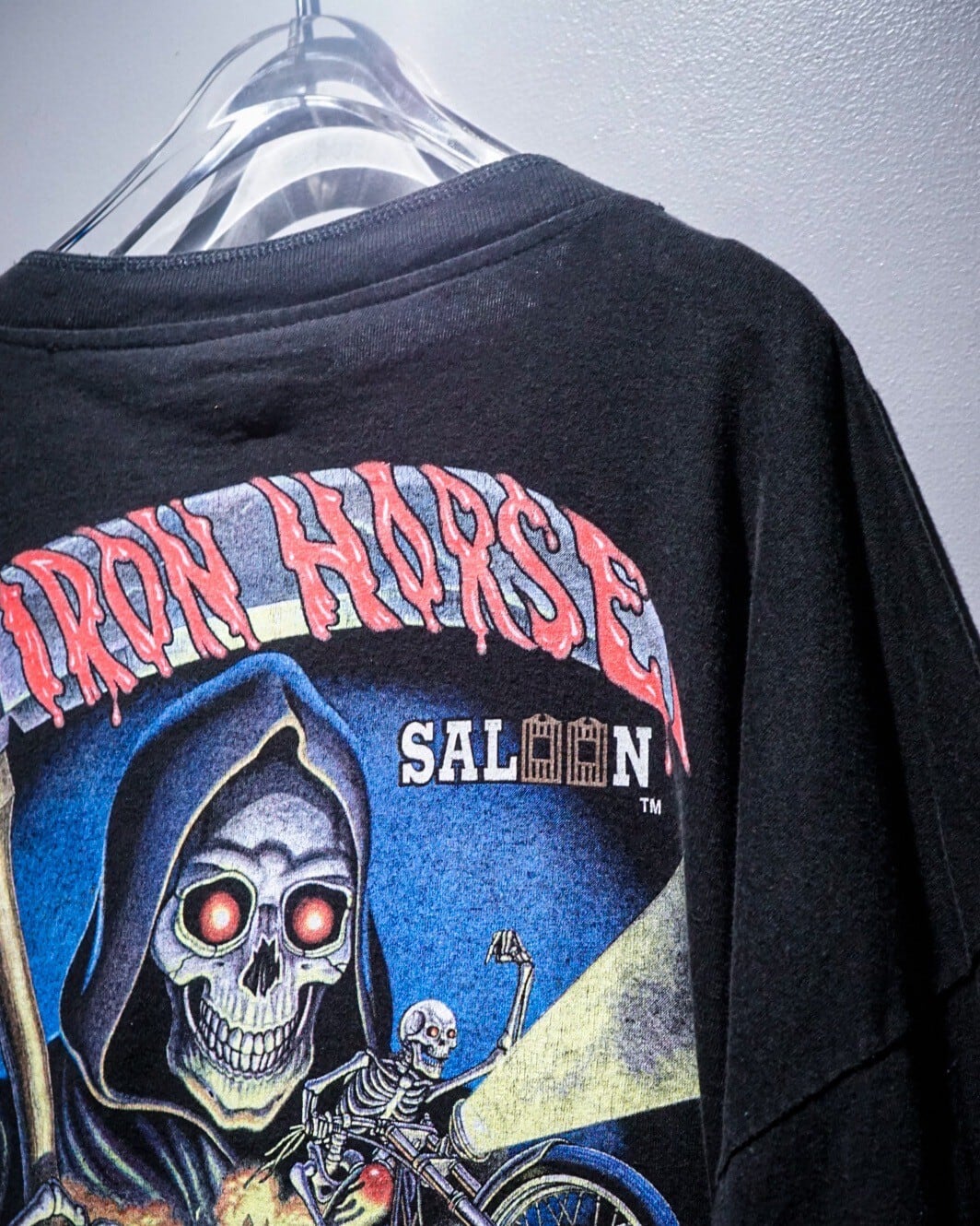 バイカーノリのスウェットでこんなにもデザインが効いたモノは非常に稀少。"IRON HORSE SALOON"のスペシャルな1着です。
