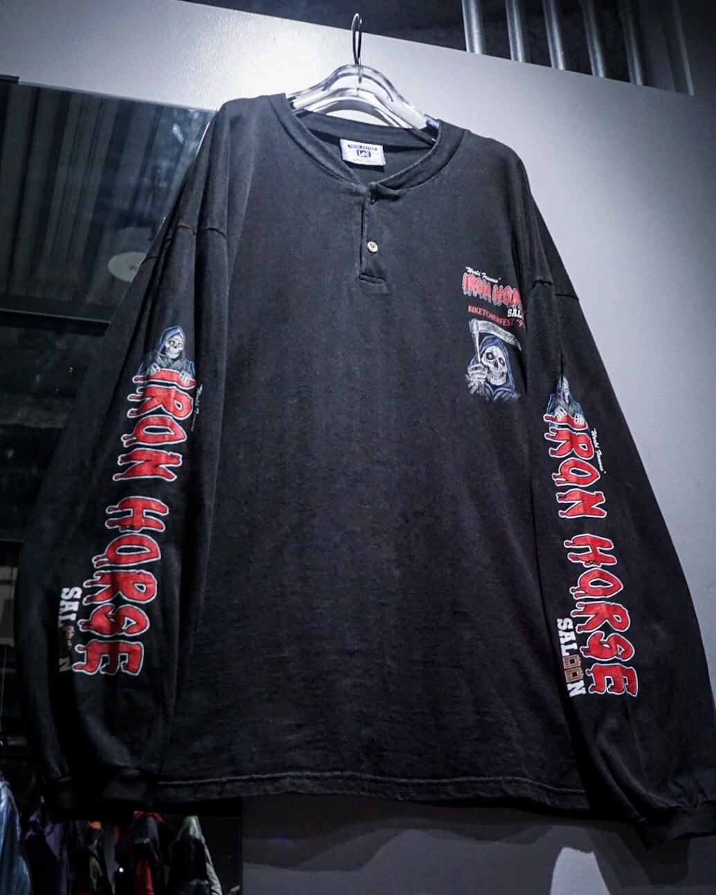 アメリカはフロリダ州、オーモンドビーチにある、バイカーの間で有名なバー"IRON HORSE SALOON"の90'sのヘンリーネックシャツ。