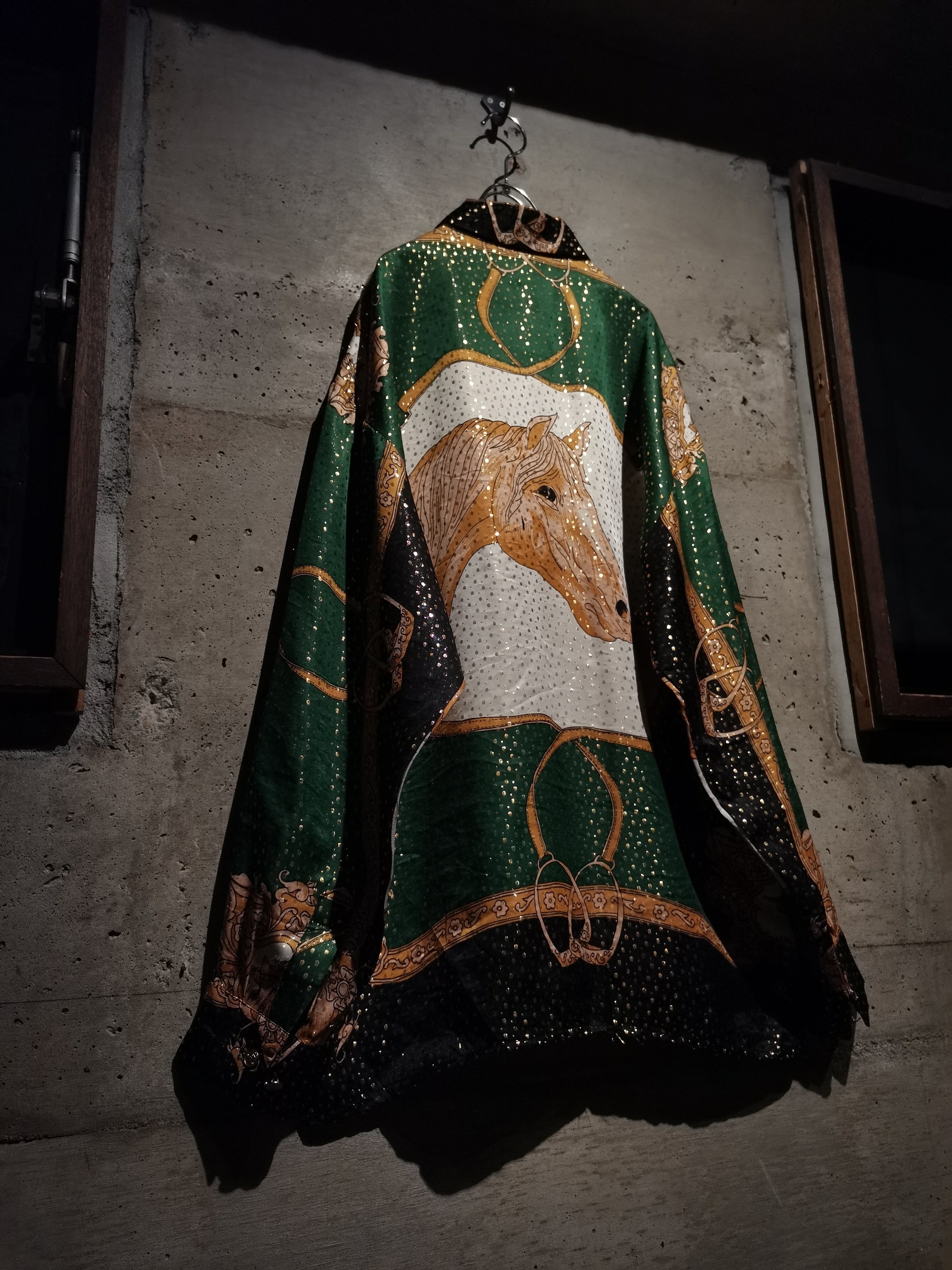 ボックスシルエットかつ、ルーズなサイジング。極上のシルク素材と相まって落ち感も素晴らしい、、、柄模様だけでなく、着用時のシルエットにも魅力されます。