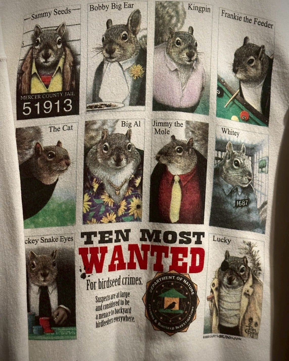 指名手配犯10人を10匹のリスでデザイン。凶悪犯のデザインですが、リスの愛らしさがあり、絶妙な抜け感が堪りませんね、、、