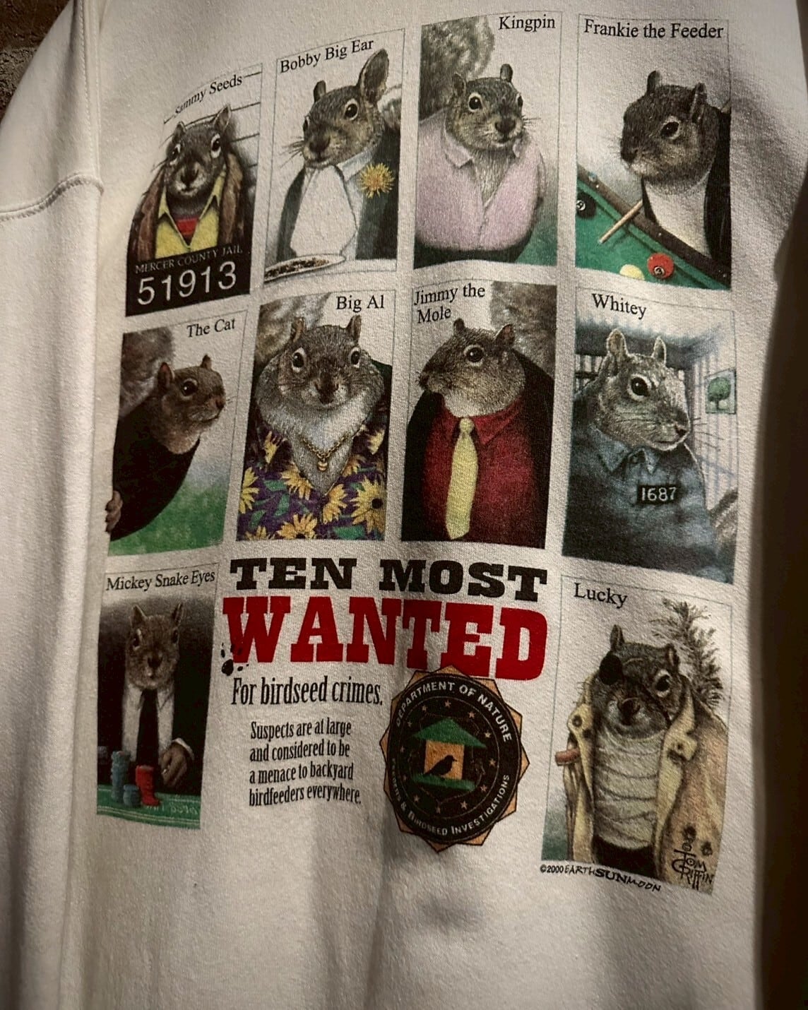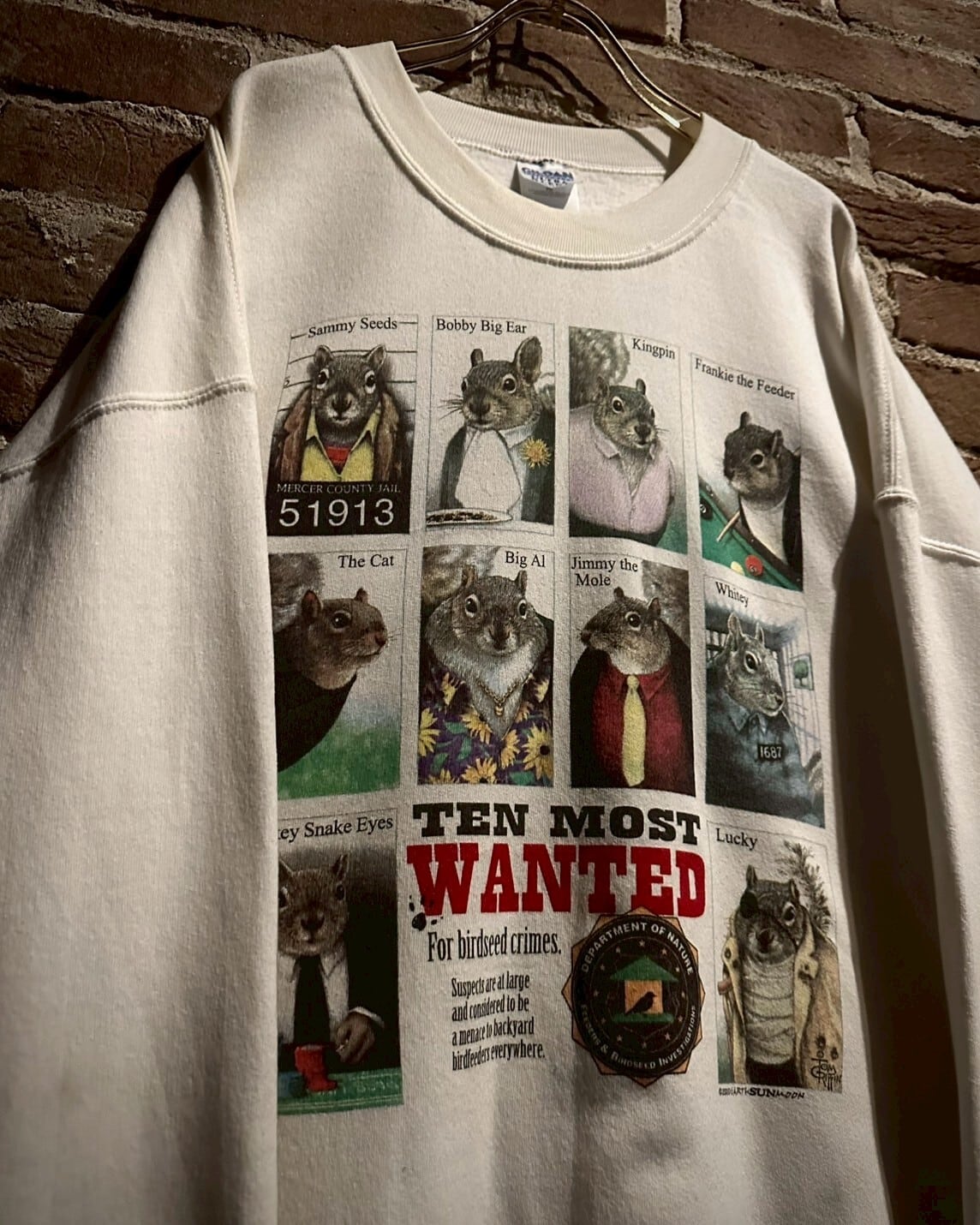アメリカのFBが公開している、指名手配犯10人をリストアップした"Ten Most Wanted"をパロディしたスウェット。