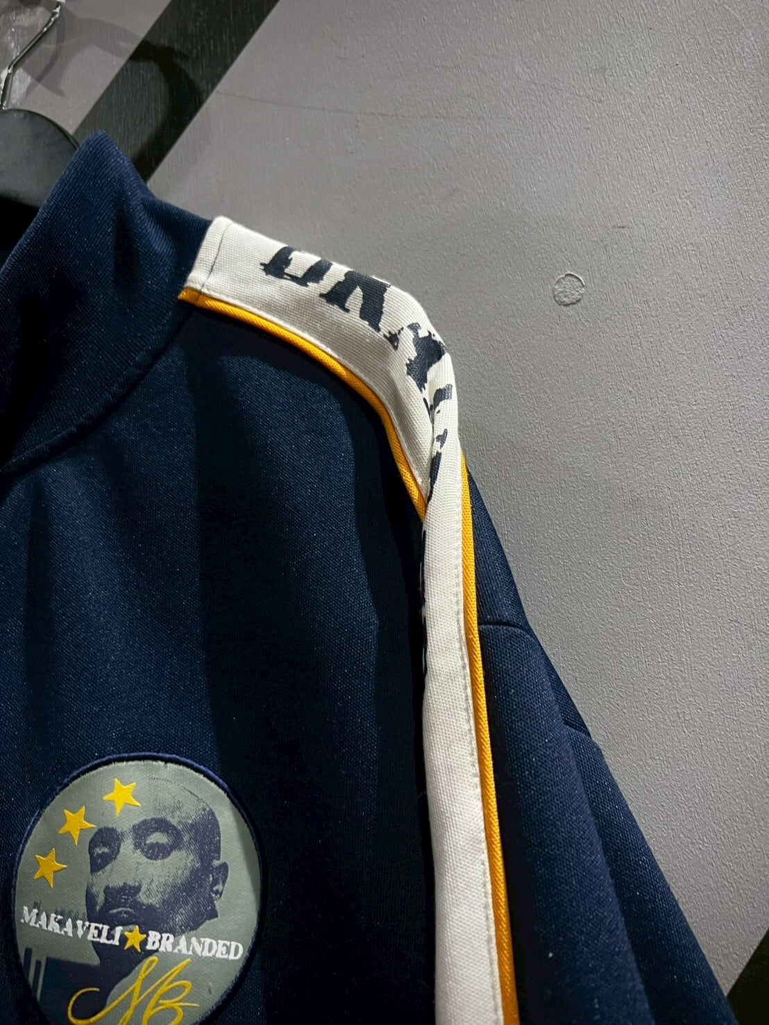 HIPHOP界のレジェンド、2PACが別名義として使用していた、イタリアの政治思想家から名前を取った"マキャベリ"。その名前をブランドネームとして2PACをイメージしたアイテムを展開している"MAKAVELI"より、トラックジャケットをご紹介致します。