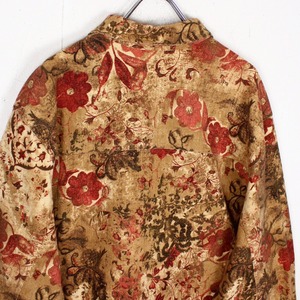 繊細な織りによって、美しい花々達を咲き誇るように映し出されたシャツジャケット。古着らしいアーティスティックな雰囲気に加え、上品な色気を感じさせる逸品。