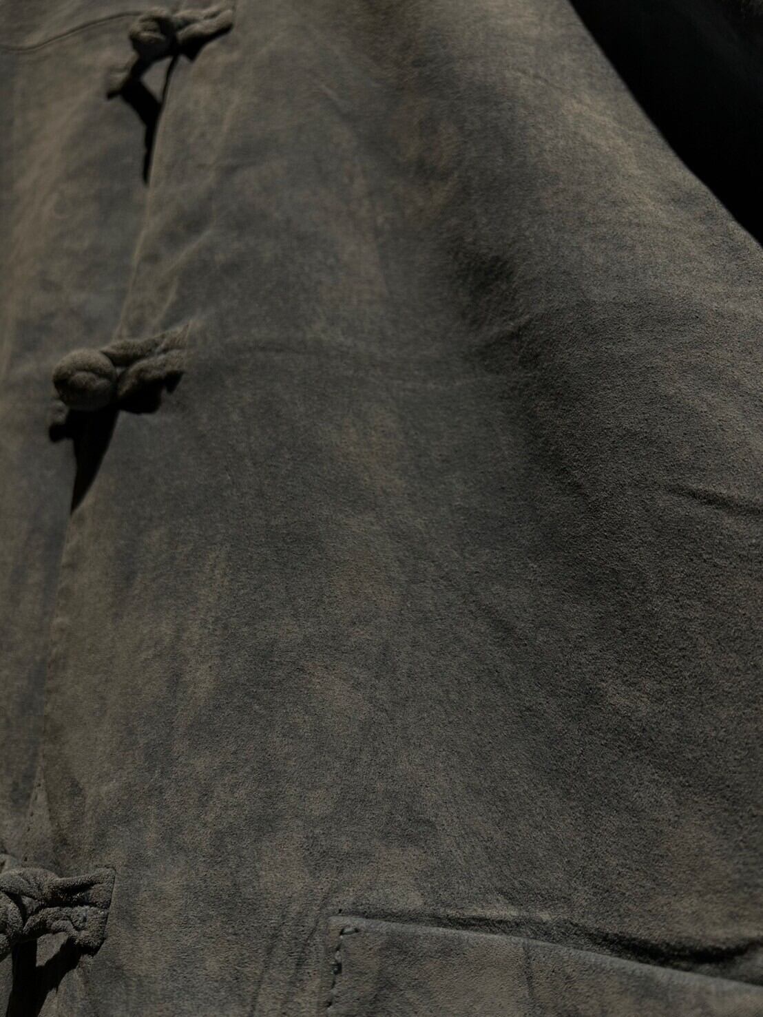 当店が継続的に仕入れ、今や代表的なアイテムとなったチャイナシャツ。その中でもスエードレザーという今までに見たことの無い素材を使った使い、カラーリングやサイジング、どれを取っても文句無しの至極の逸品です。