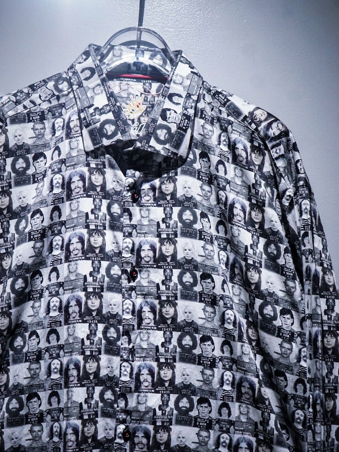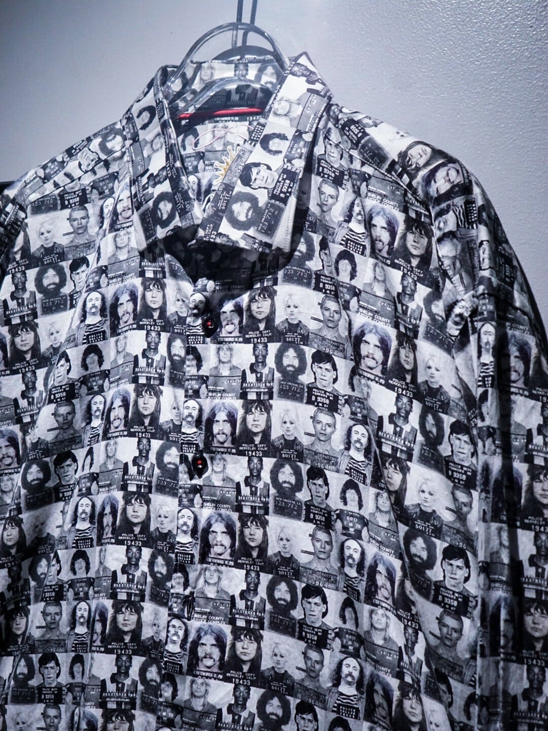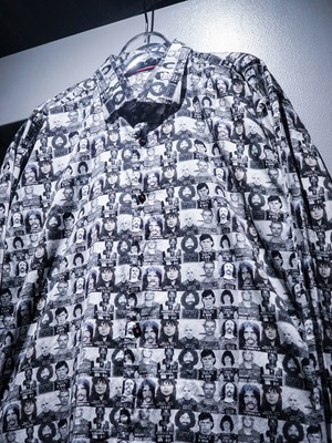 サラッと柔らかいコットン素材を採用したボディに、モノトーンで様々なマグショットをプリントした長袖シャツ。