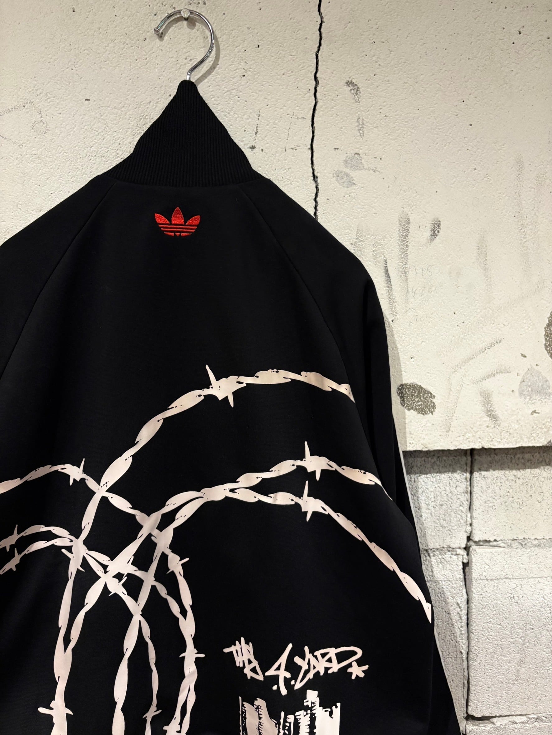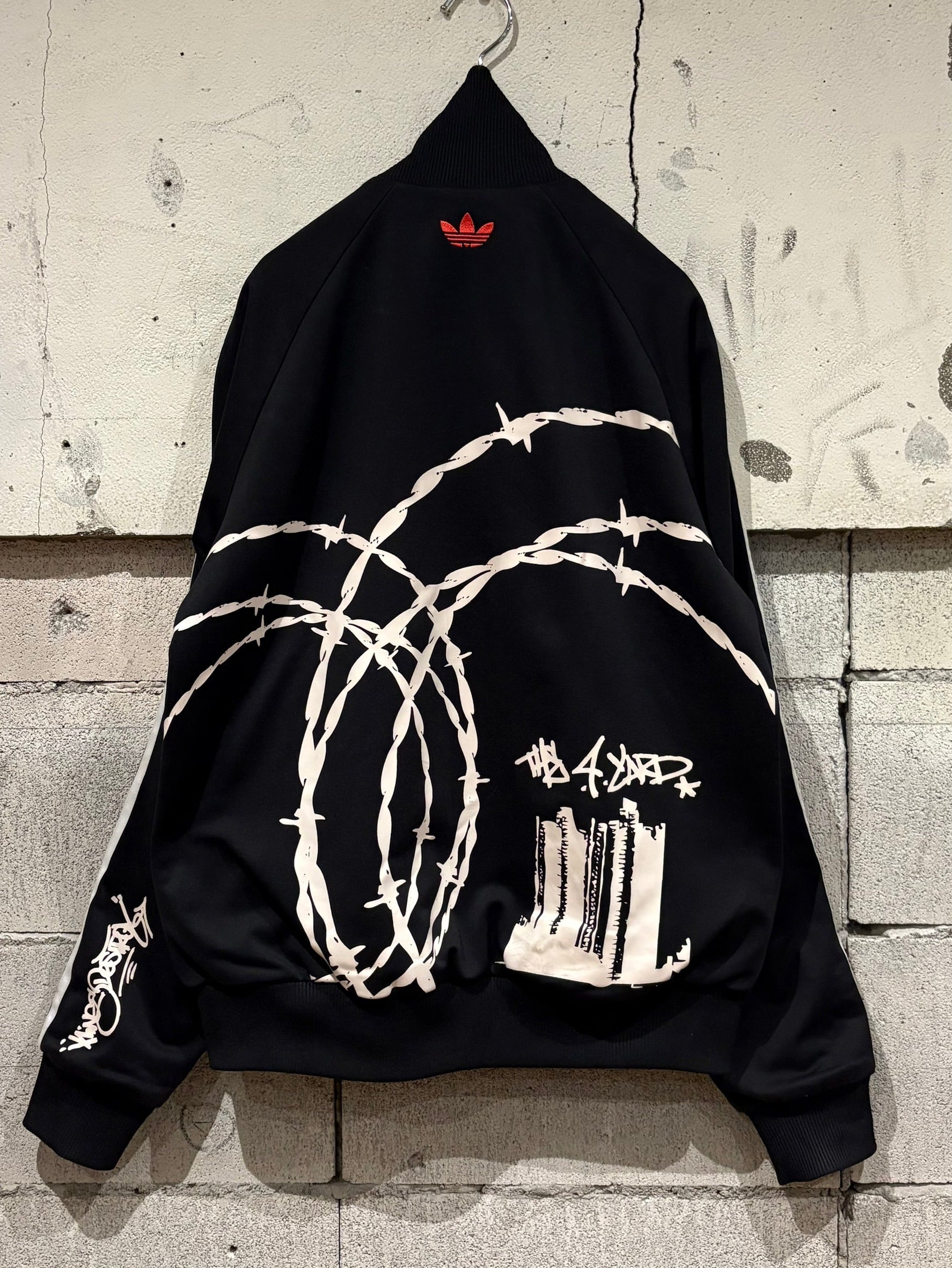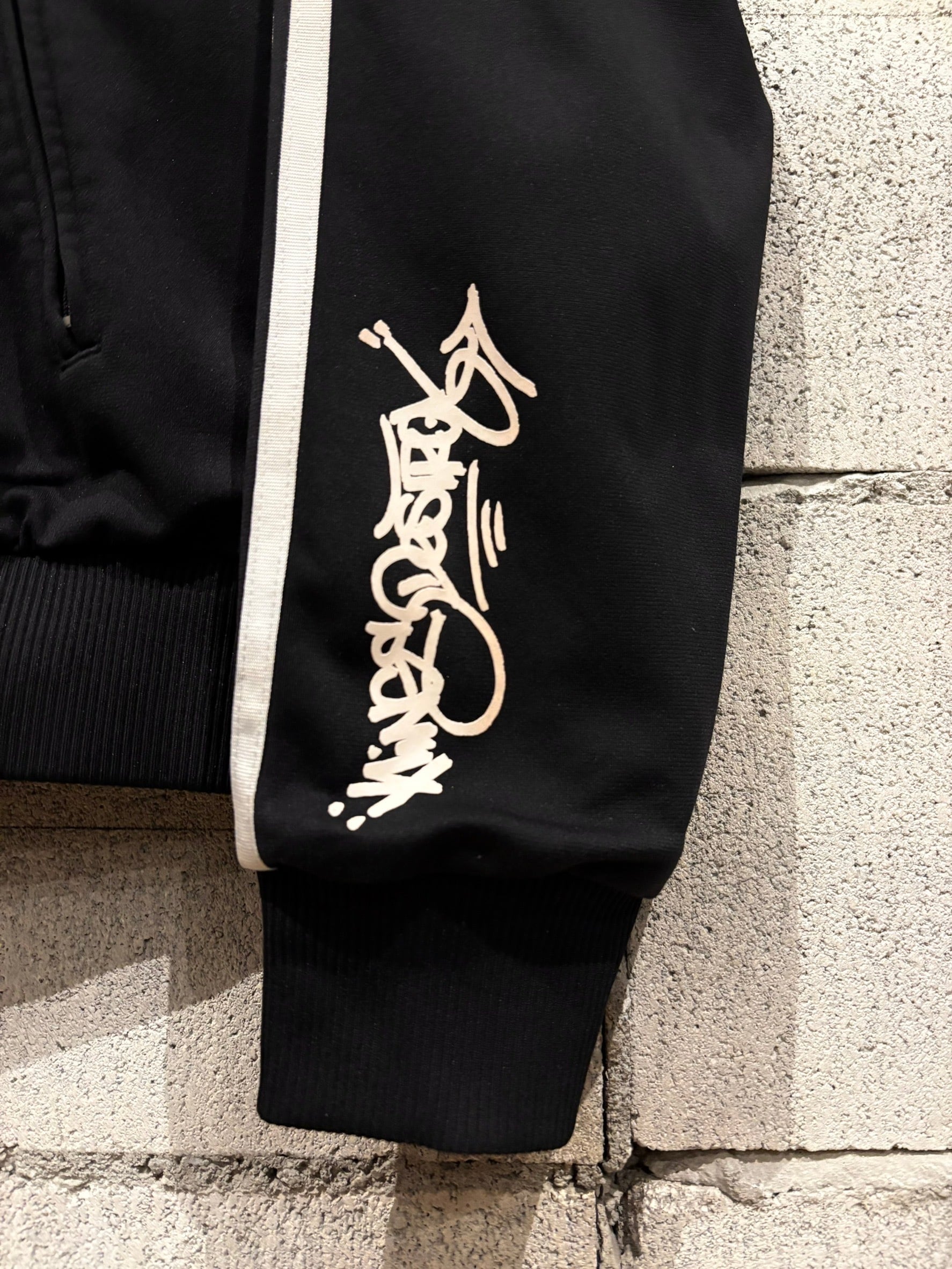 ブラックのボディをベースに、ストリートアートのようなグラフィックを載せたトラックジャケット。