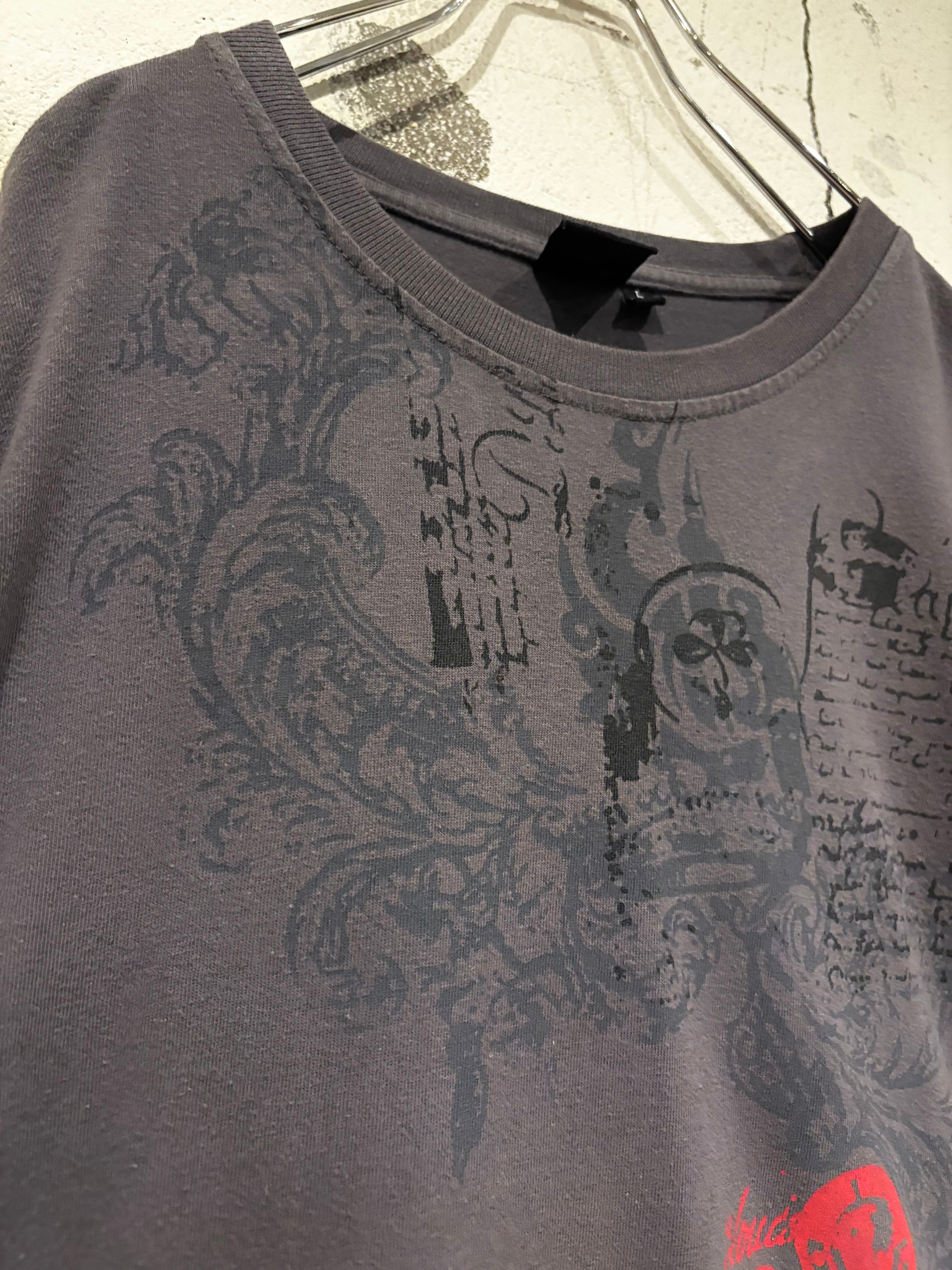 フロントには荘厳な雰囲気が漂うゴシックのデザイン。レタリングのプリントと相まって、トレンドでもあるY2Kな雰囲気を漂わせています。