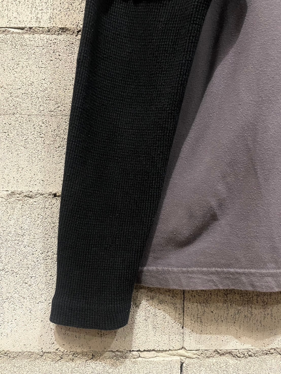 ブラックのサーマル地のロンTに、フェードグレーのTシャツを重ねたような、レイヤード風に仕上げられたロンT。