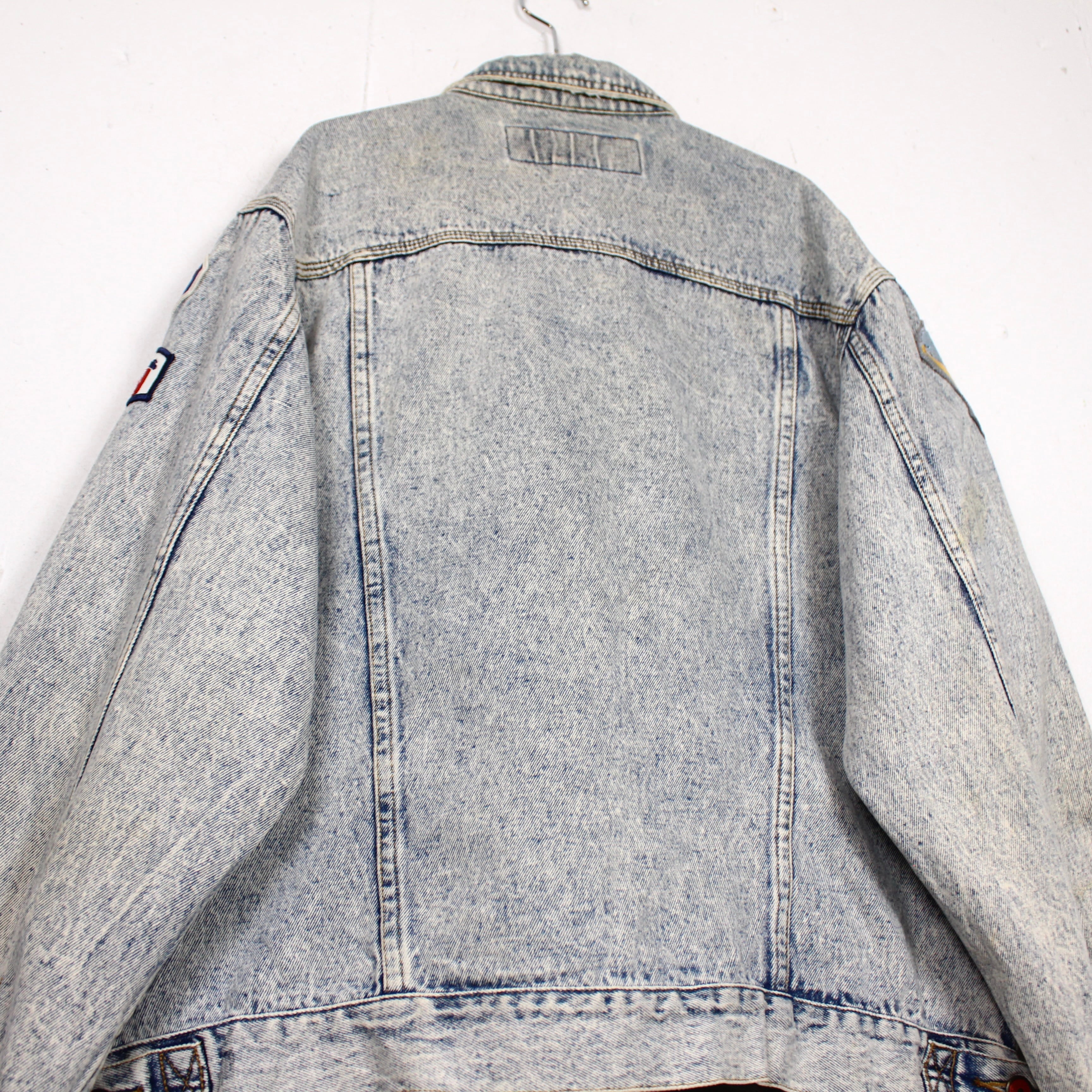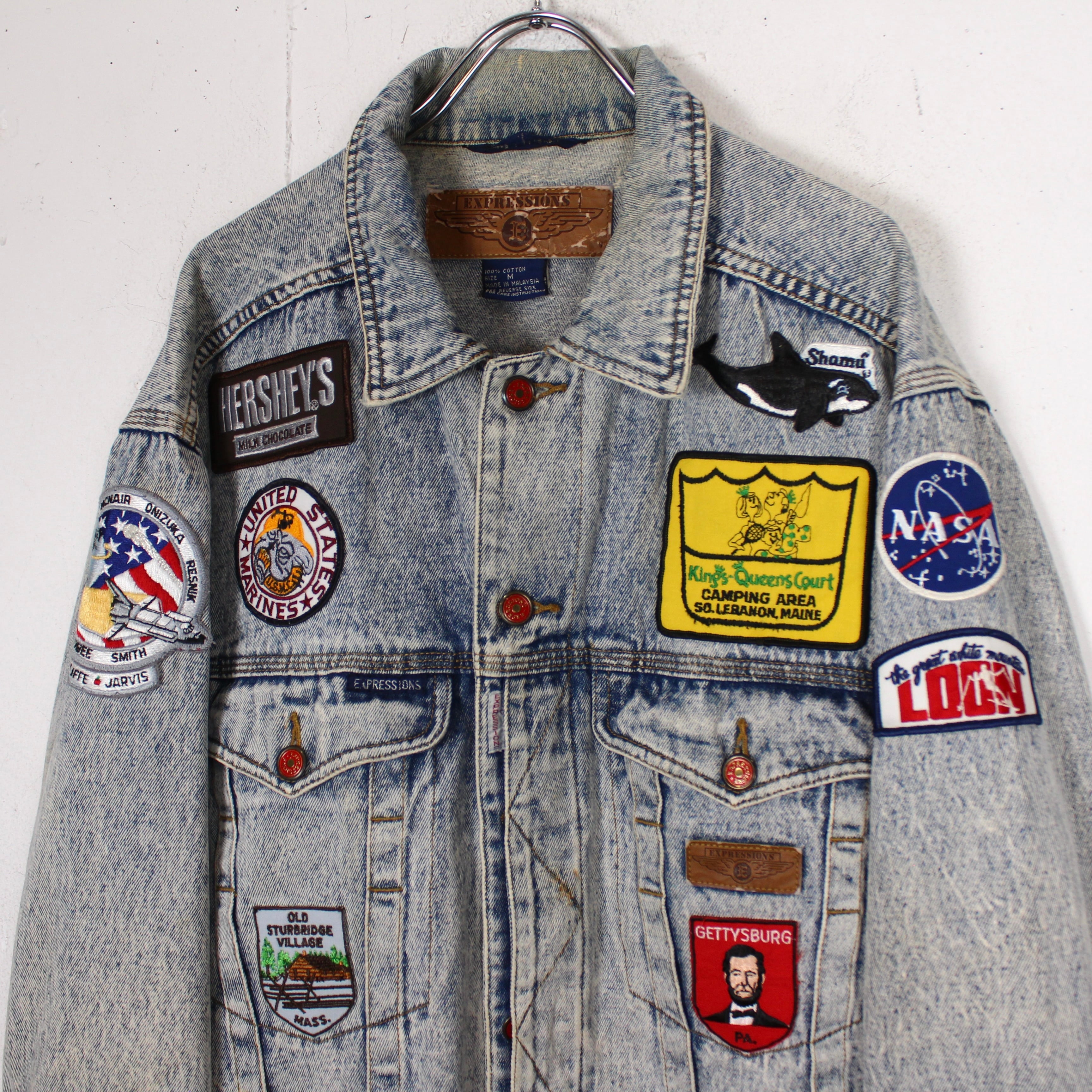 ケミカルウォッシュを効かせた風合い豊かなデニムをボディにワッペンをカスタムしたデニムジャケット。