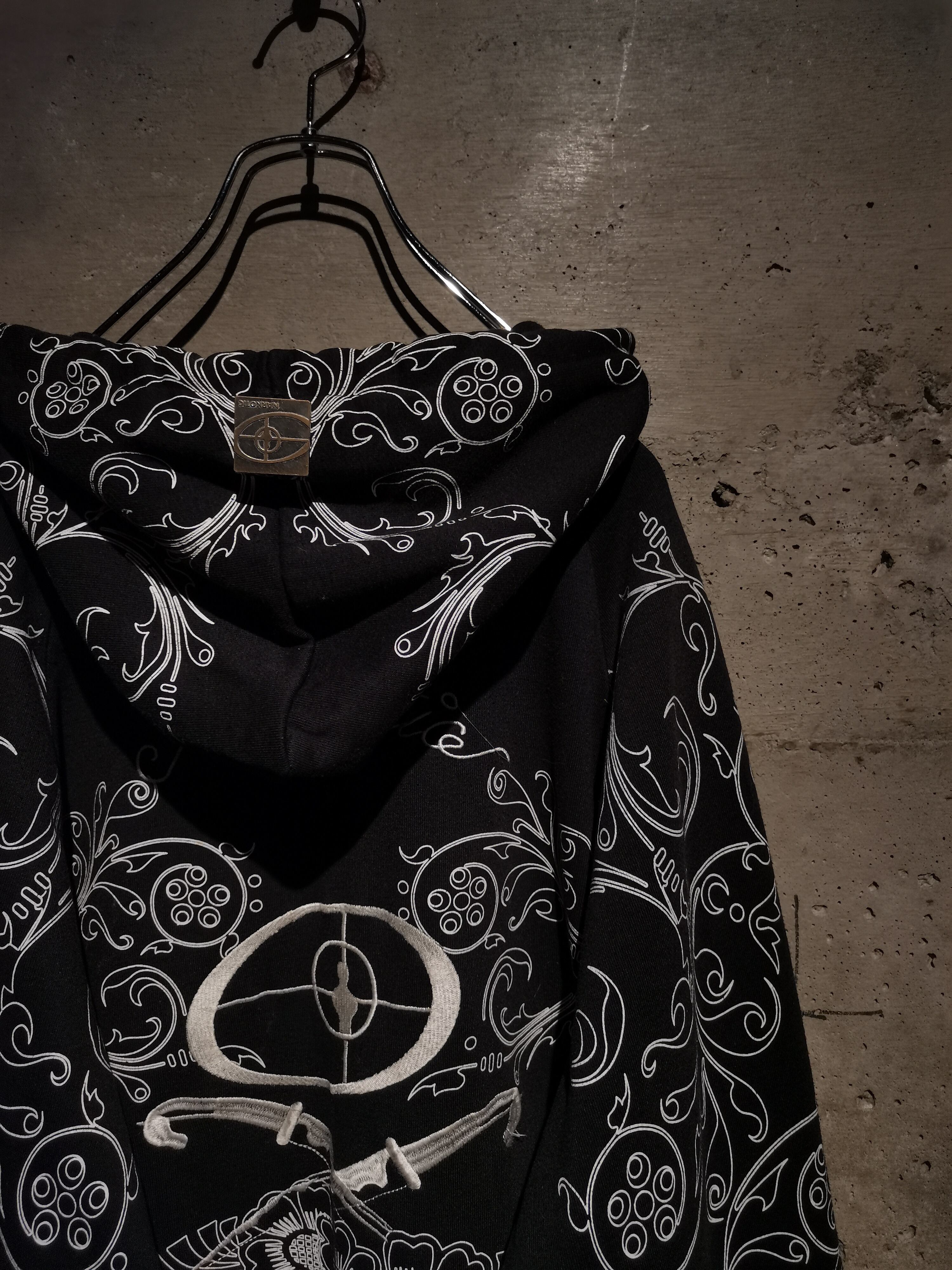 定番のアイテムに緻密で繊細な刺繍、プリントでボタニカル柄を載せたことで、当店らしいアーティスティックかつモードな雰囲気へと昇華させたジップアップフーディの逸品です。