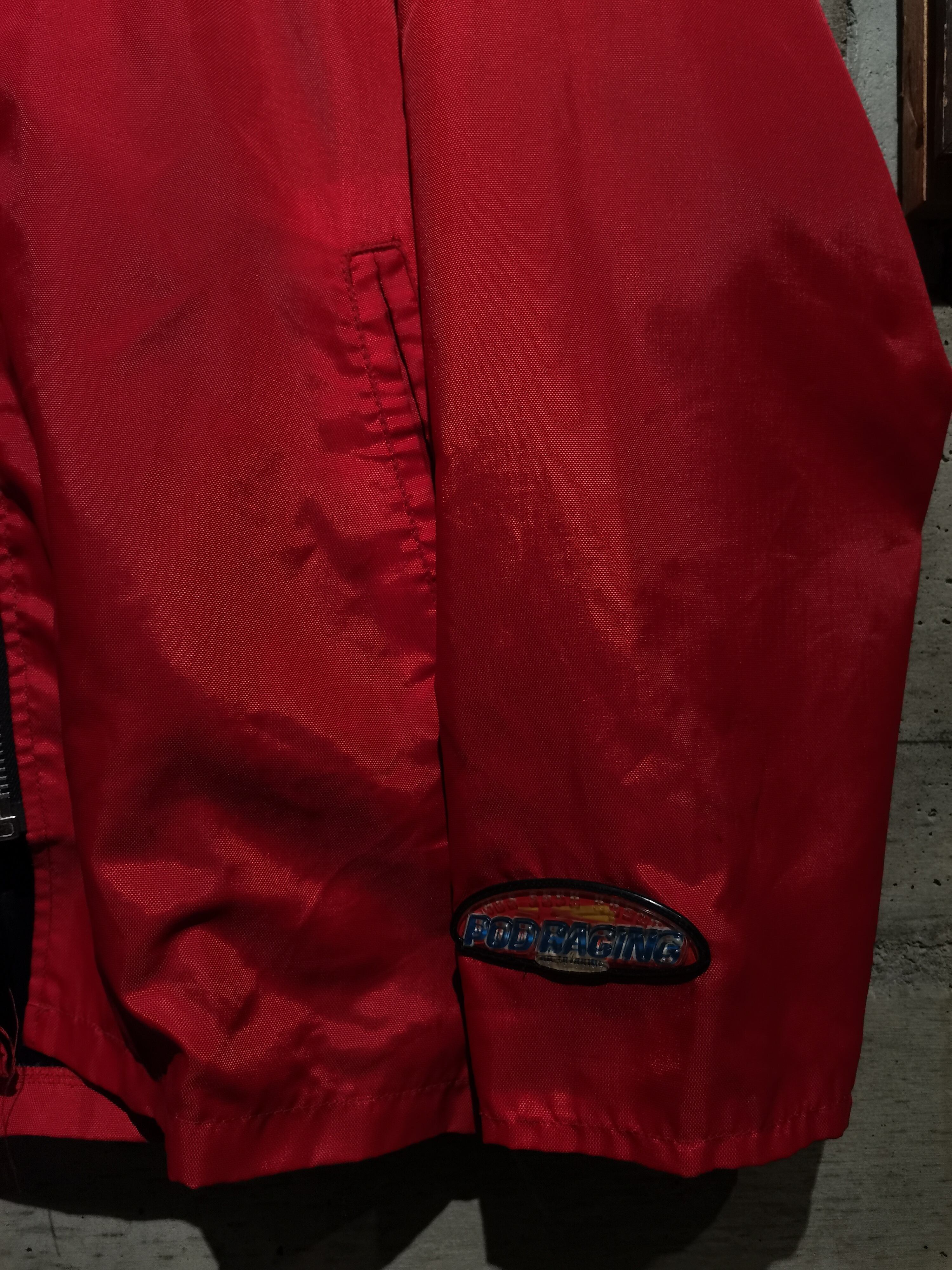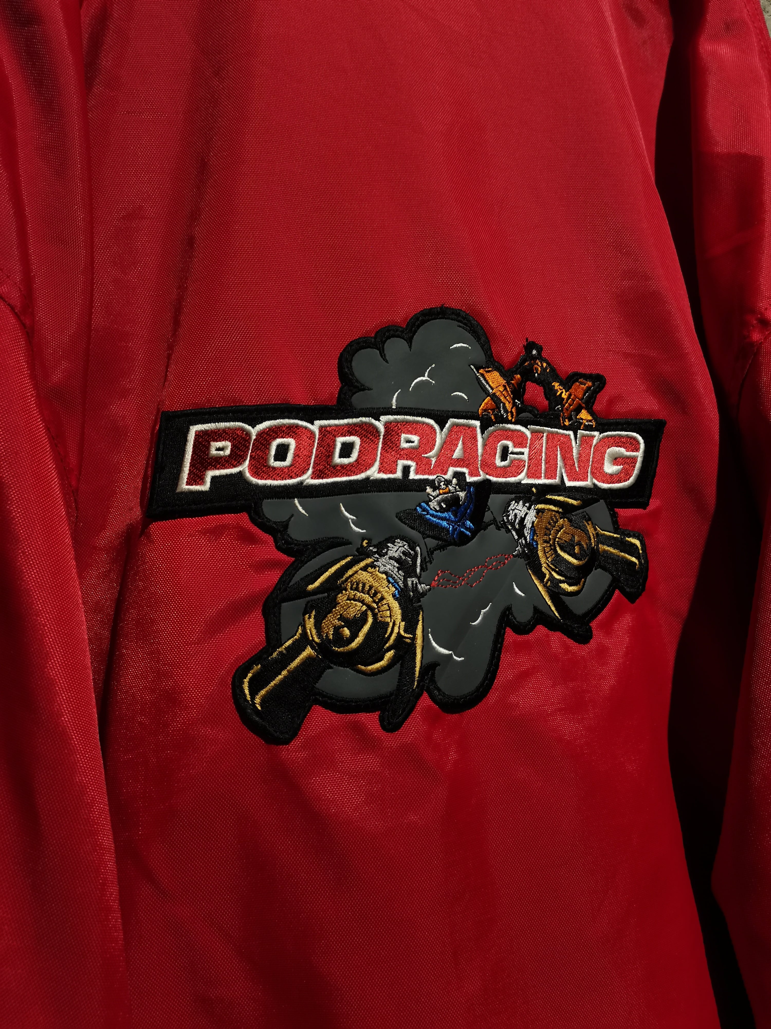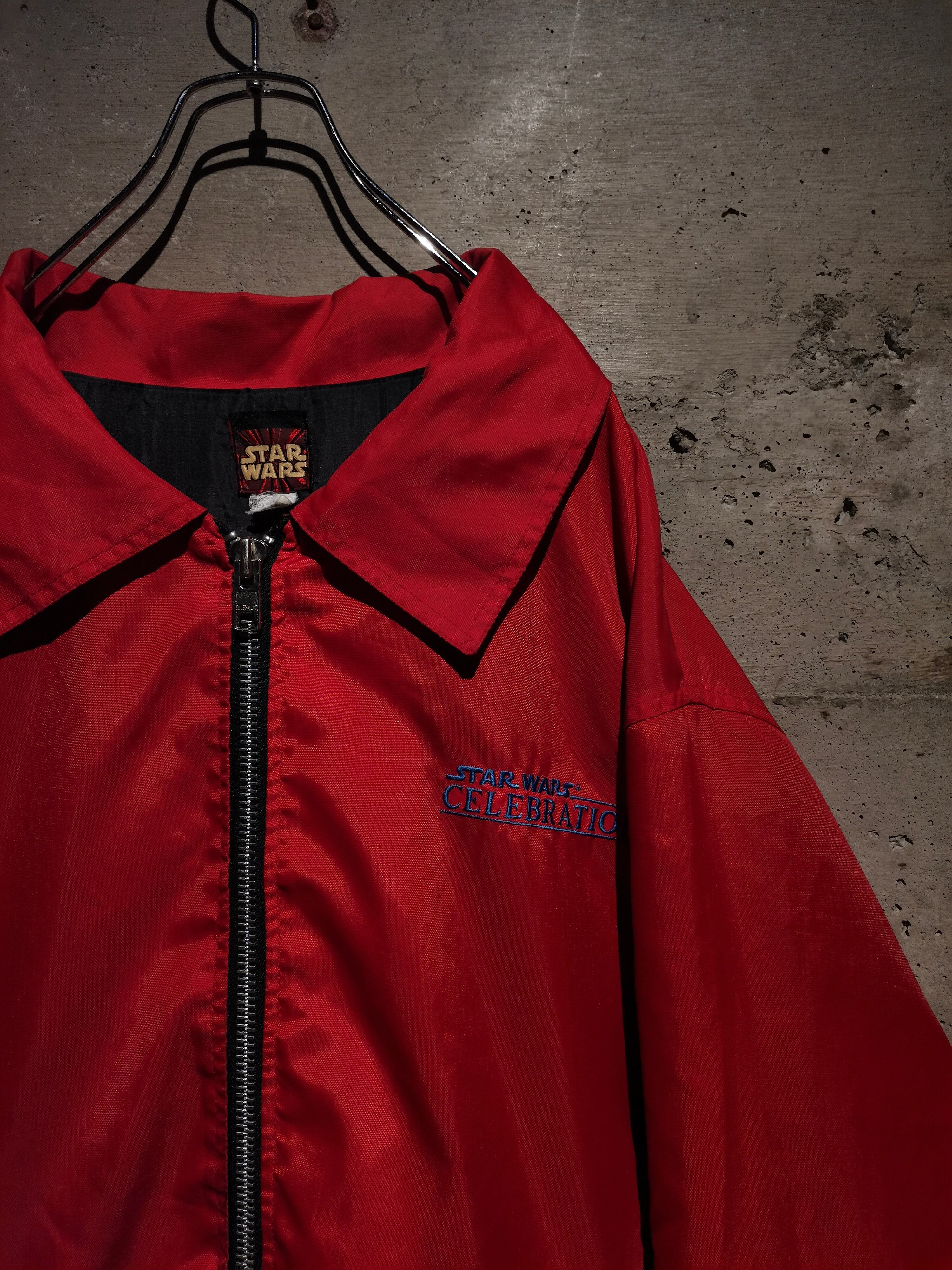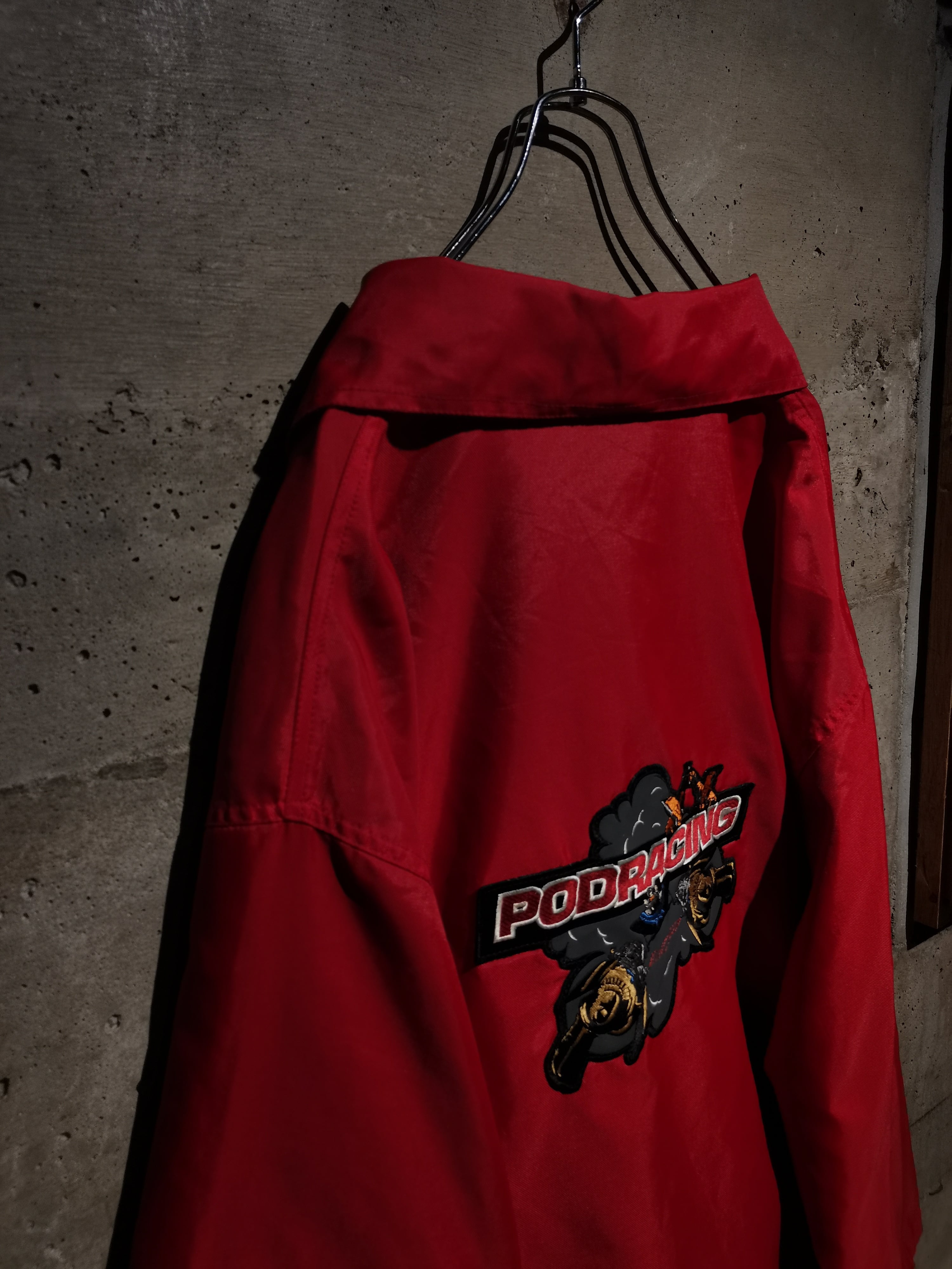 発色の良い真っ赤のボディをベースに、左胸にはSTARWARS CELEBRATIONの刺繍デザイン、背面には本編に登場するレース、ポッドレースのワッペンを施したジャケット。