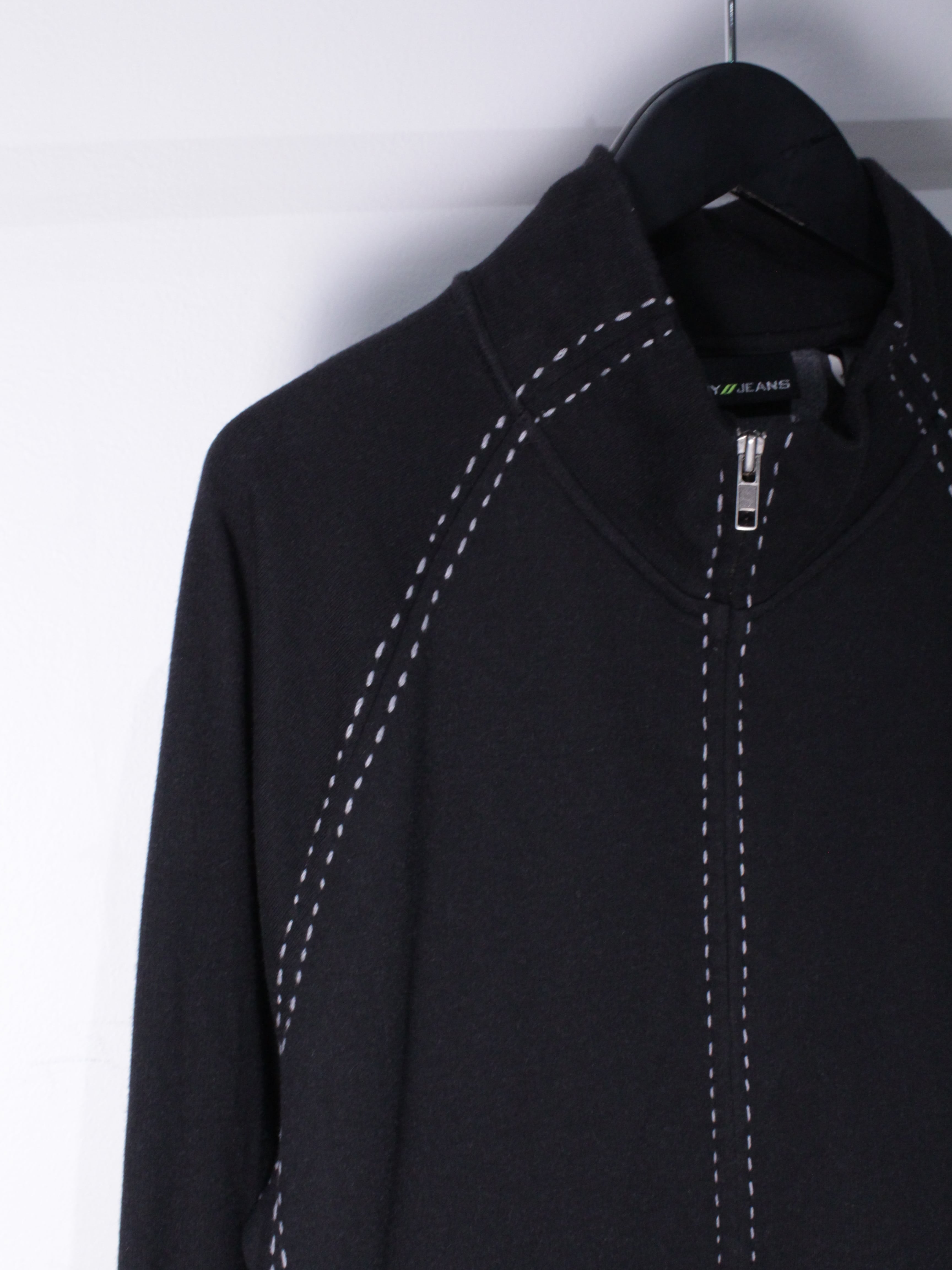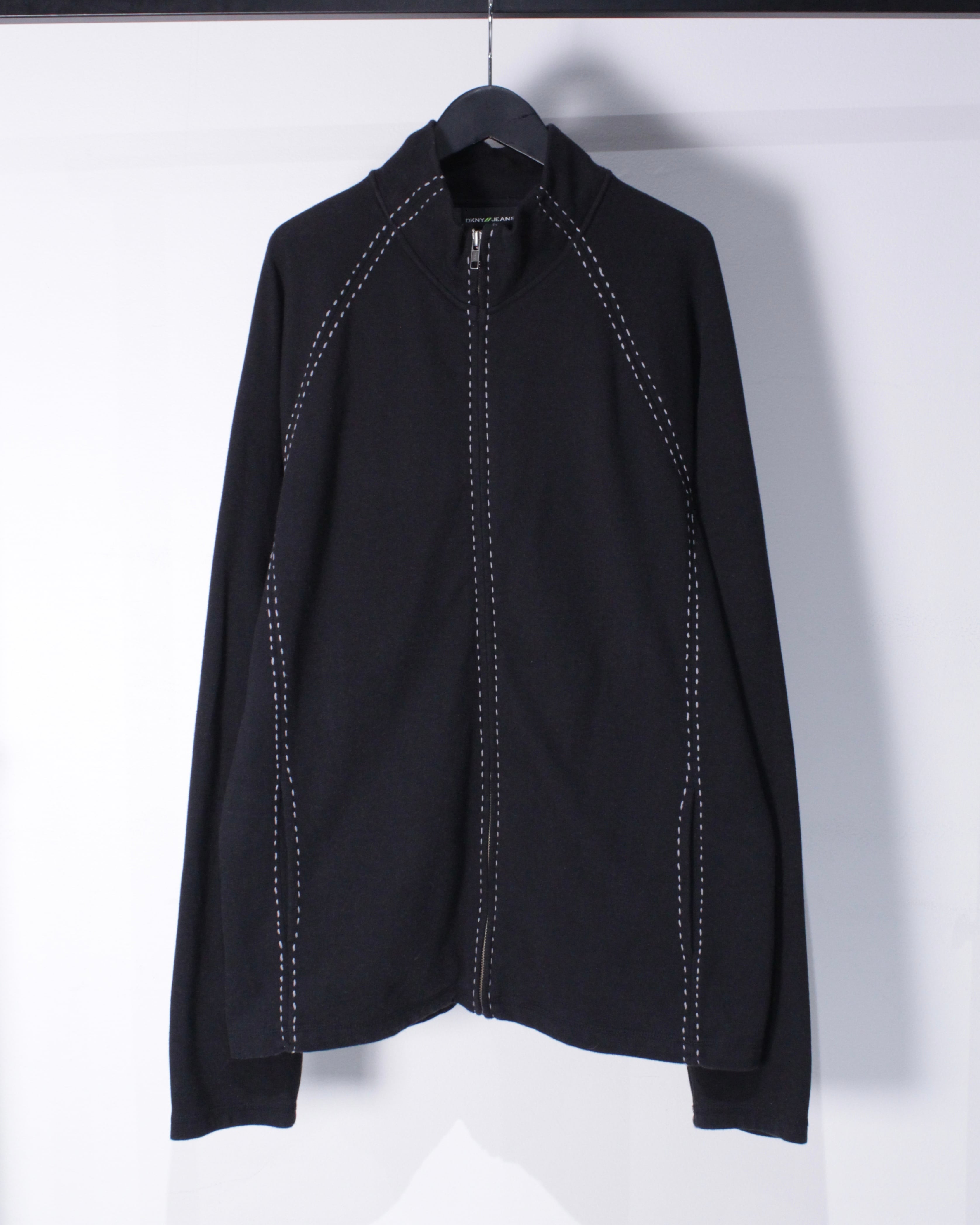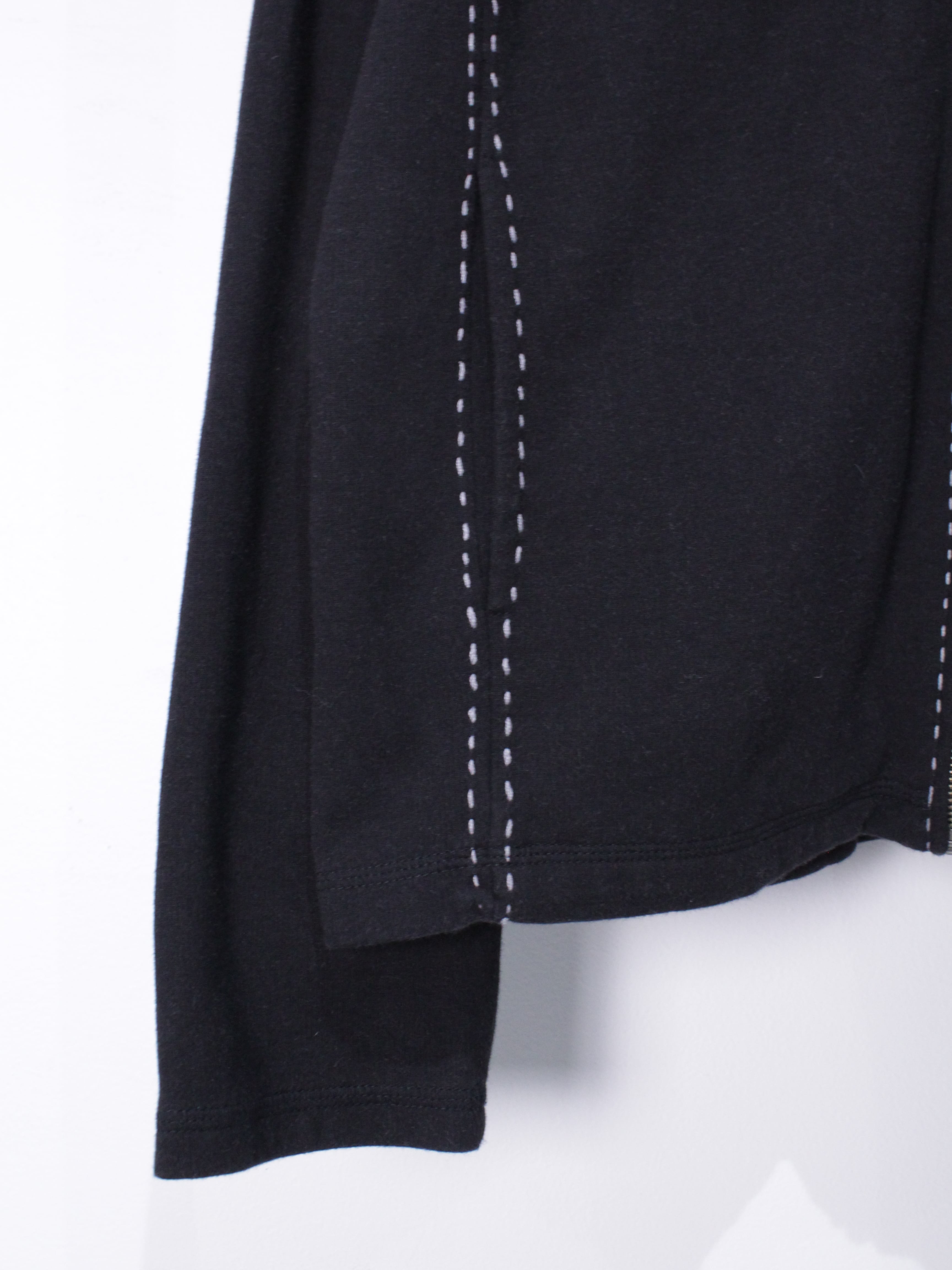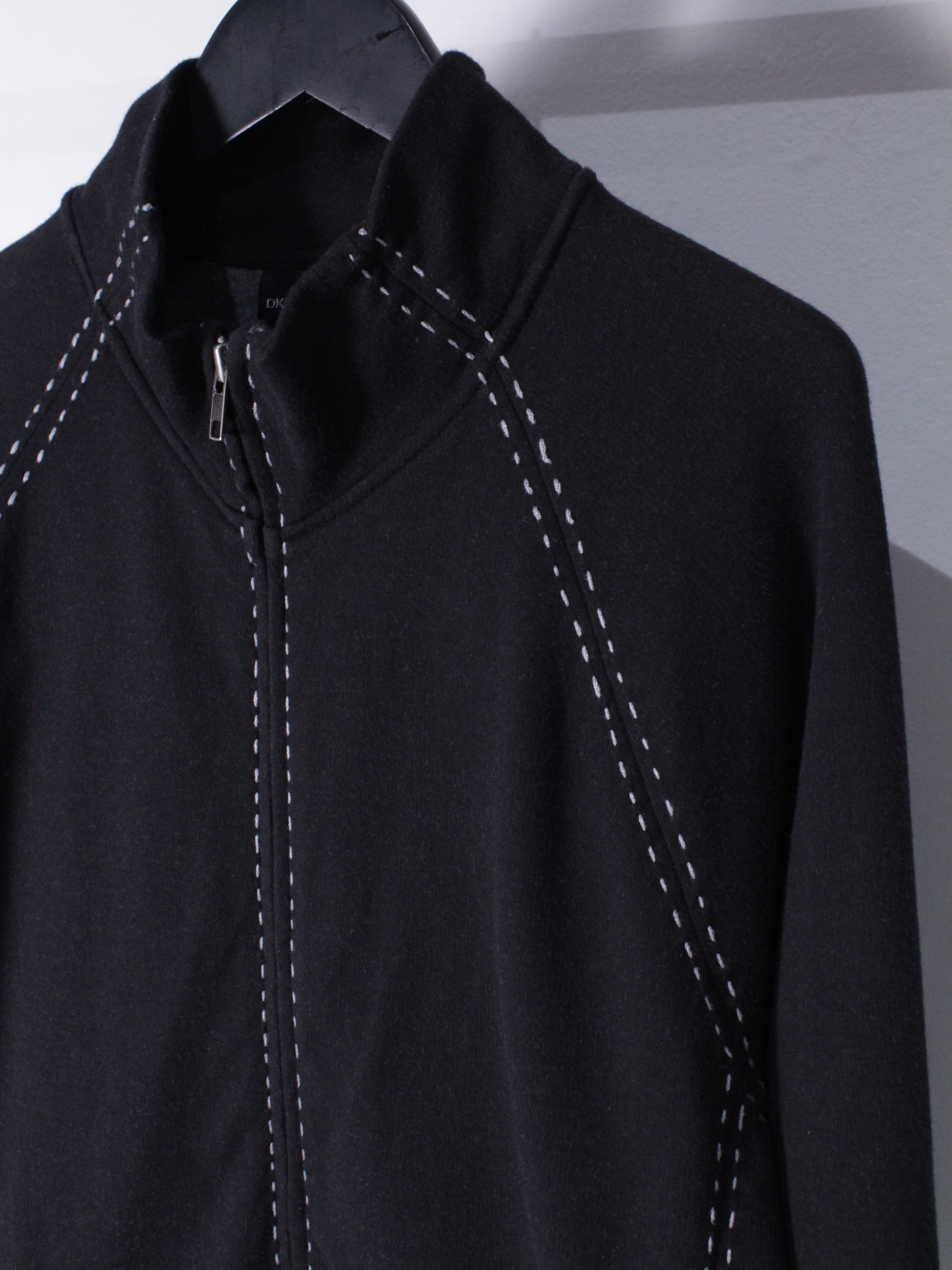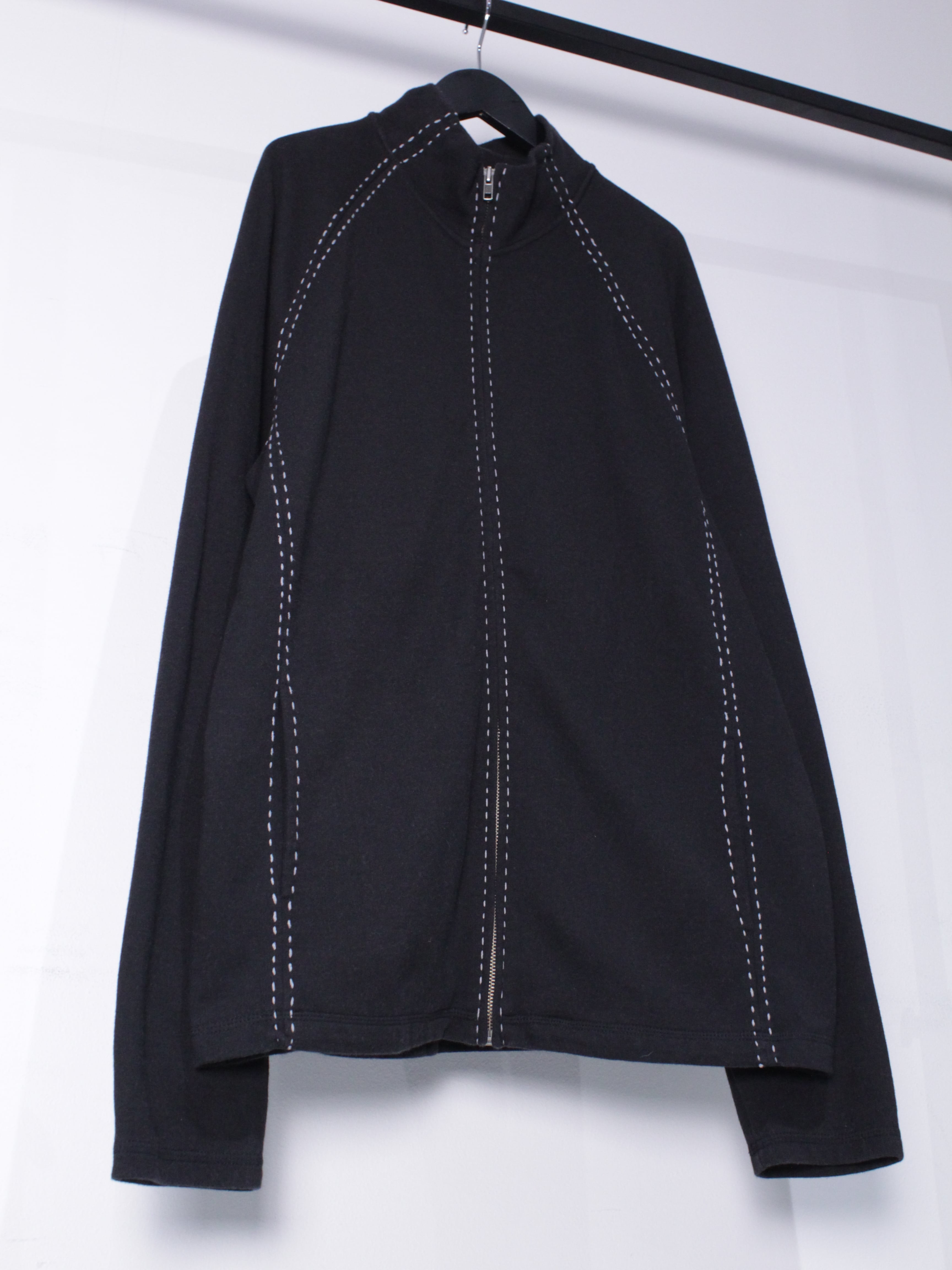 程よい肉感のあるスウェット生地にホワイトステッチを刻んだジップアップジャケット。