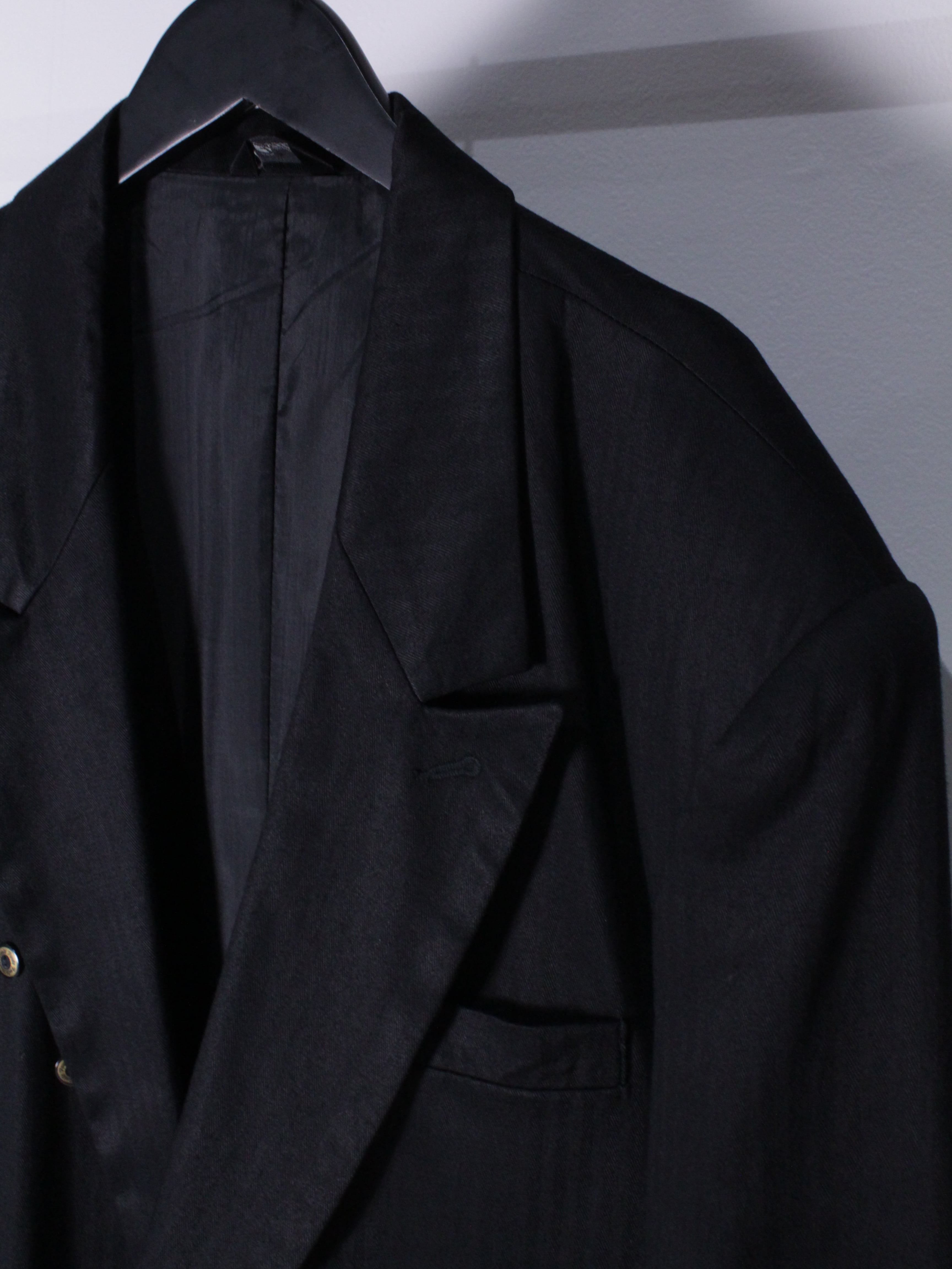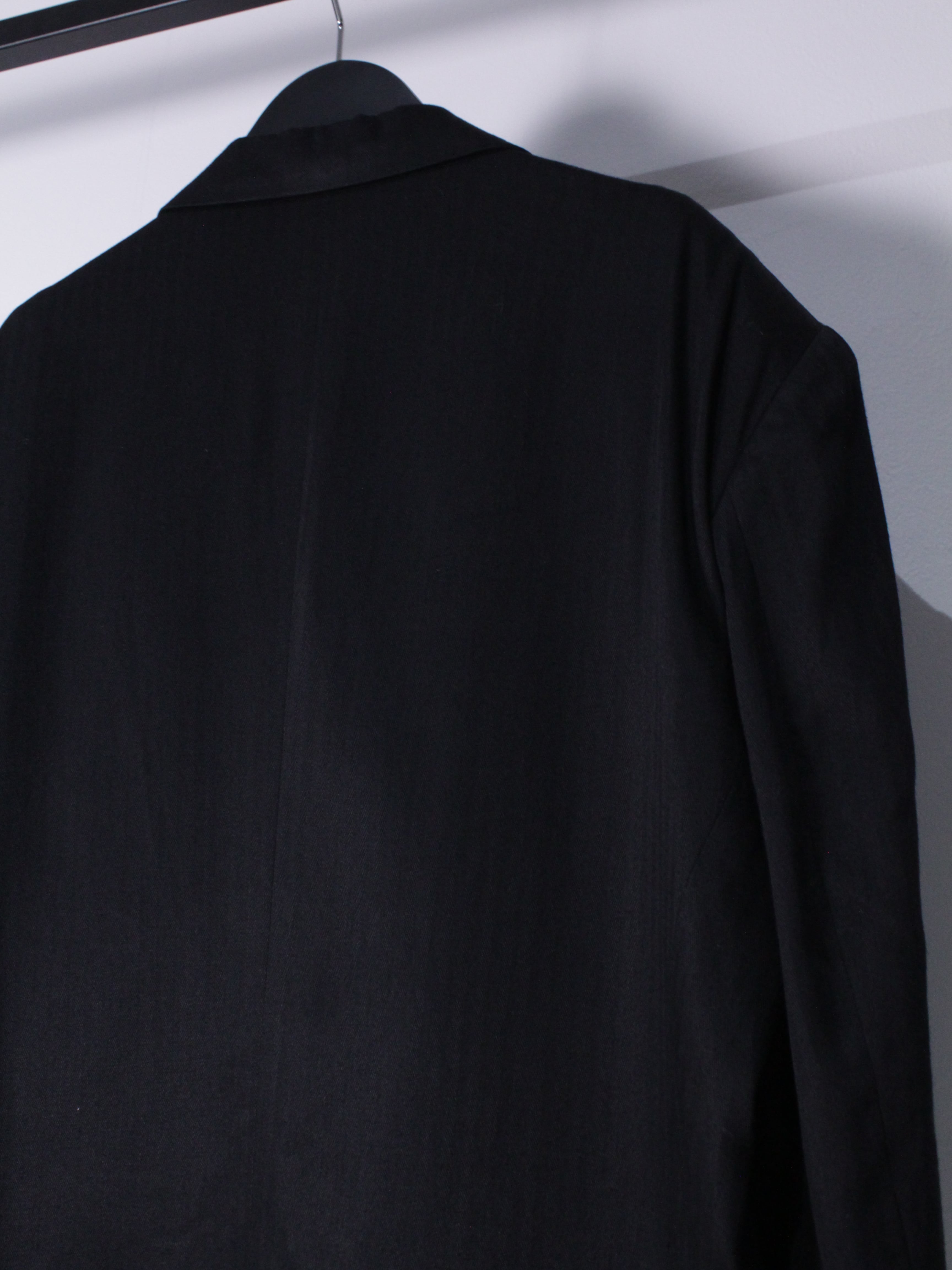 フロントは雰囲気を漂わせるピークドラペルにダブルブレスト仕立て。ラペルの右部分には3連ボタンの装飾を施しており、この少しエッジの効いたデザインアプローチに服好きの心が擽られます。