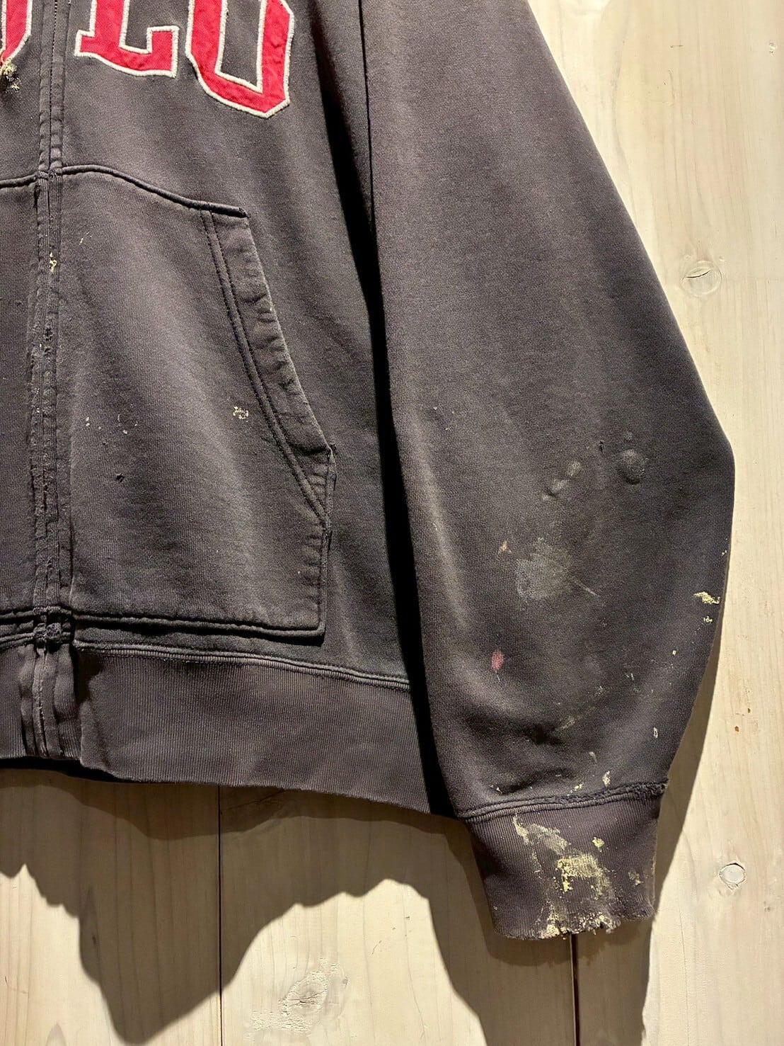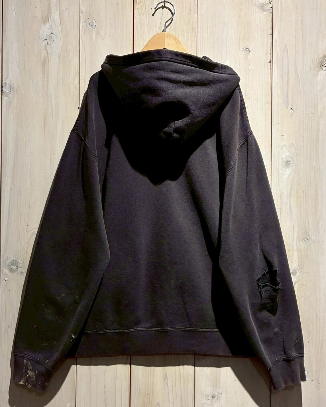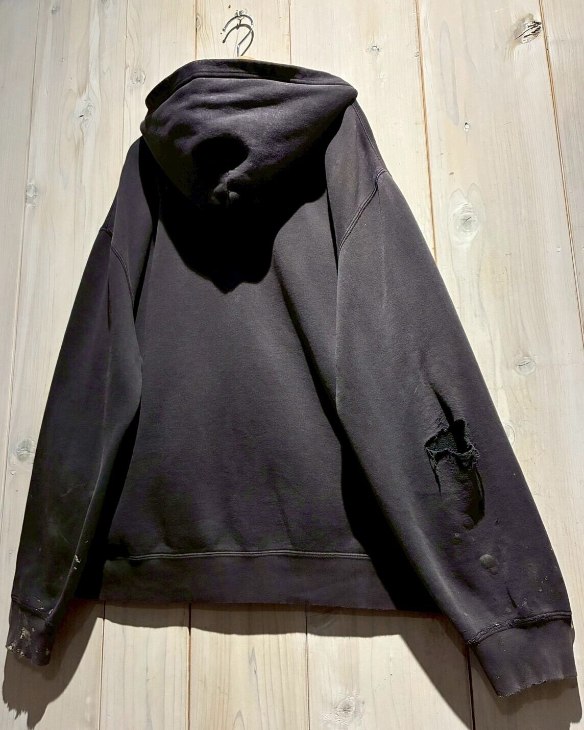 フェード感のあるブラックのボディに、随所にペイントが散らされた1着。ボロ感も相まって全体的な経年変化がより一層雰囲気を醸し出しています。