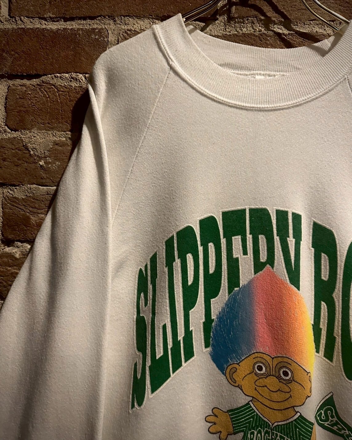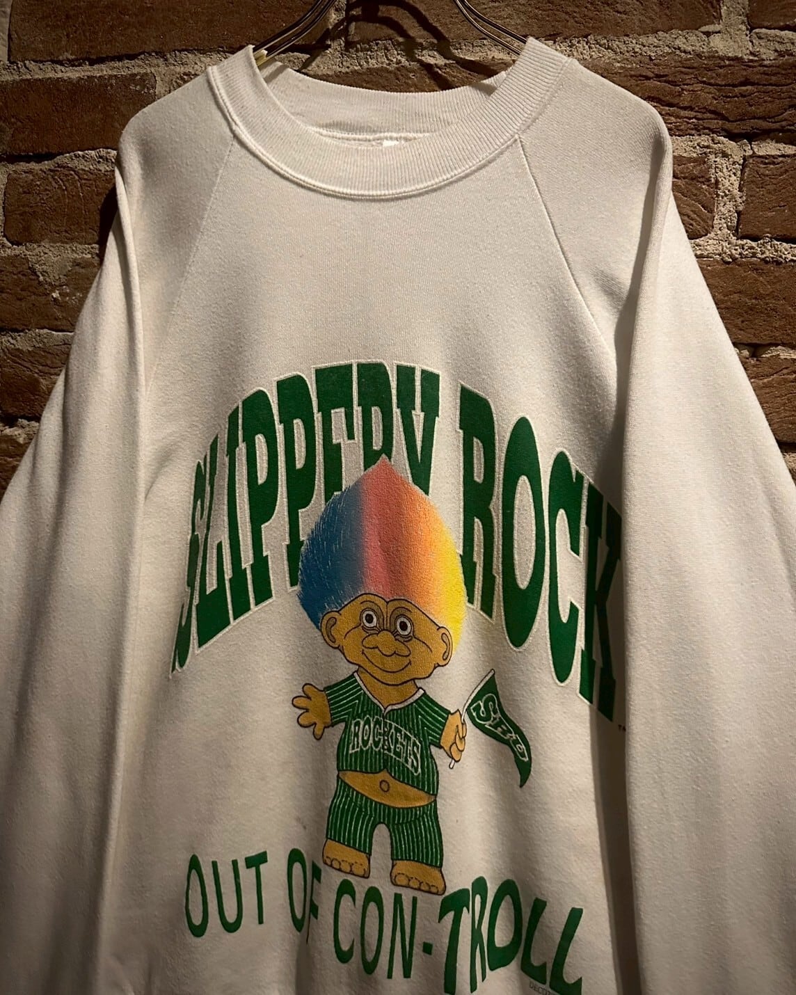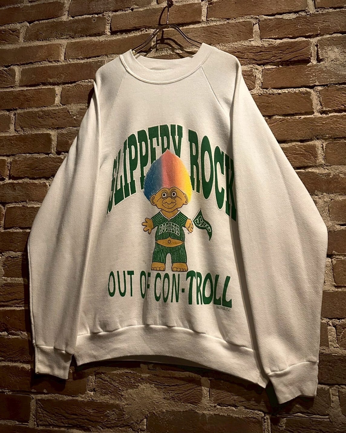 フロントにはトロールのキャラクターが載せられており、ヴィンテージのスウェットで定番のカレッジモノの中でもどこか抜け感のあるデザインバランスが絶妙なんですよね。