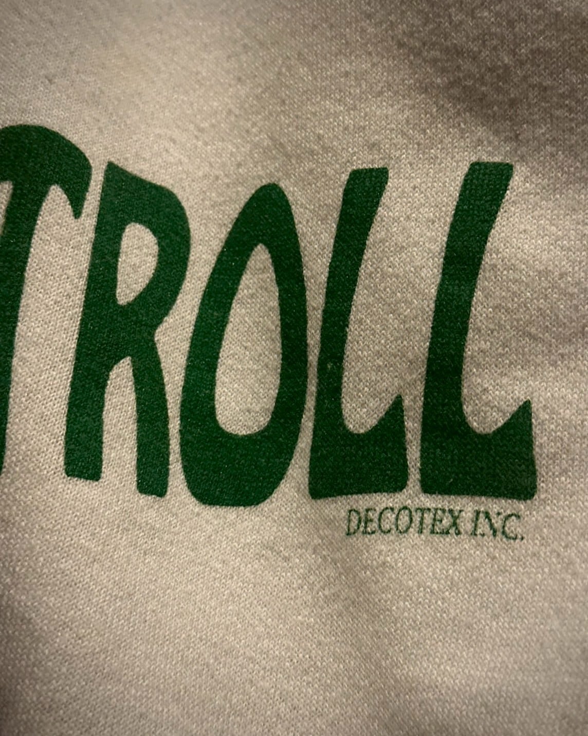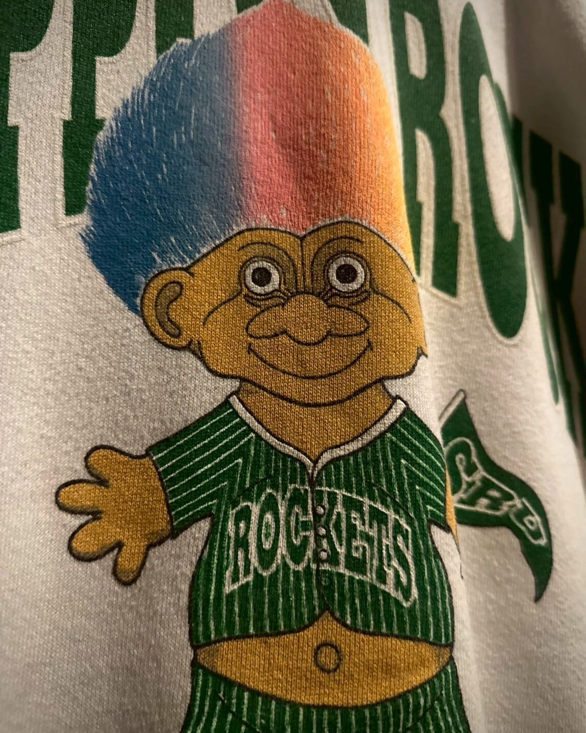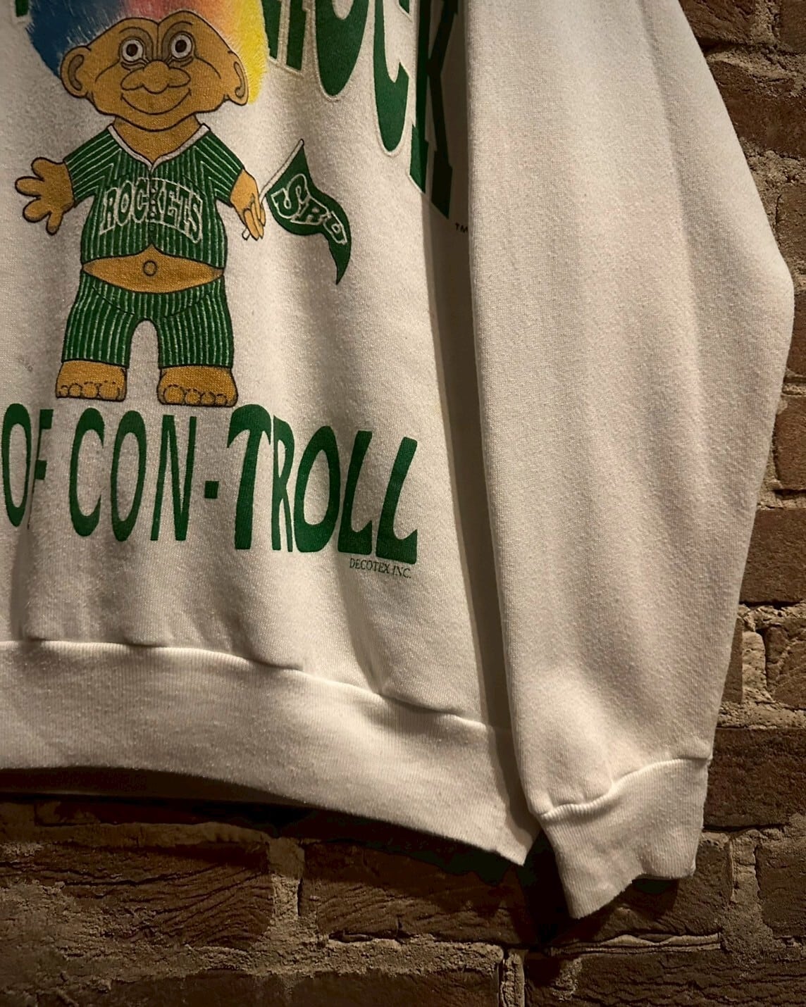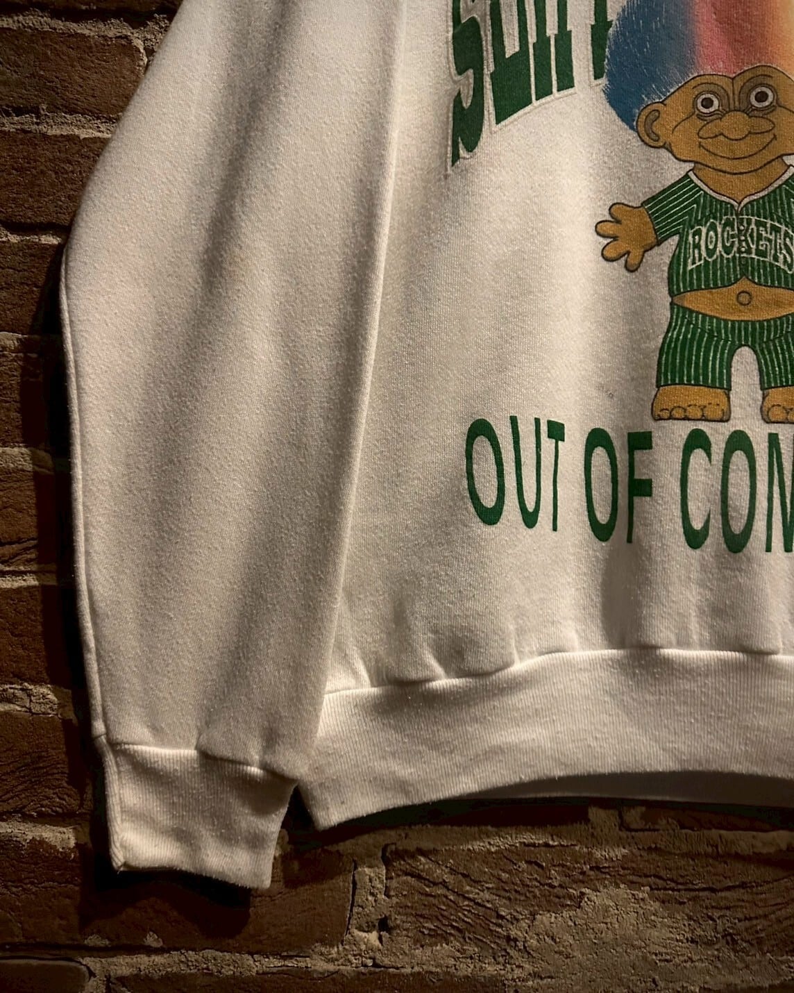 フロントにはトロールのキャラクターが載せられており、ヴィンテージのスウェットで定番のカレッジモノの中でもどこか抜け感のあるデザインバランスが絶妙なんですよね。