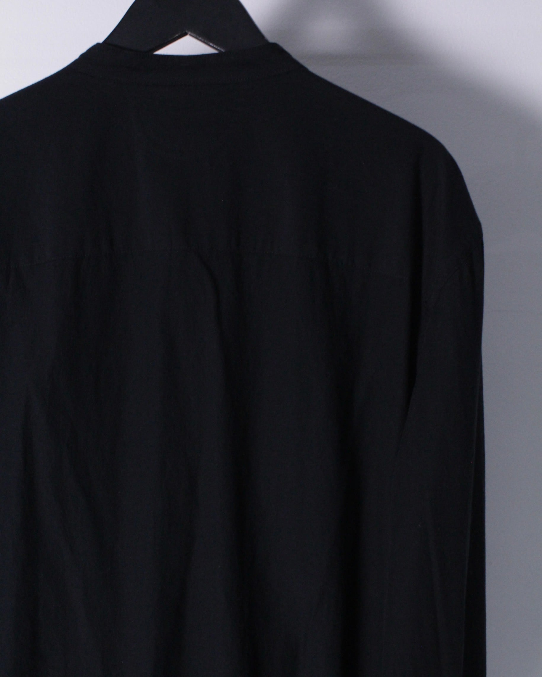 肌触り柔らかく、ドライな質感のテキスタイルを用いて、レイヤード風のデザインを落とし込んだ長袖シャツ。