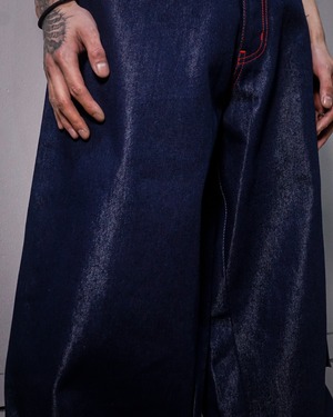 古着との相性はもちろん、ハイストリートや、ラグジュアリーなスタイリングにMixするのもオススメ。メタリックに仕上がった事でデニムをより一層ファッショナブルなアイテムとしてお楽しみいただけます。